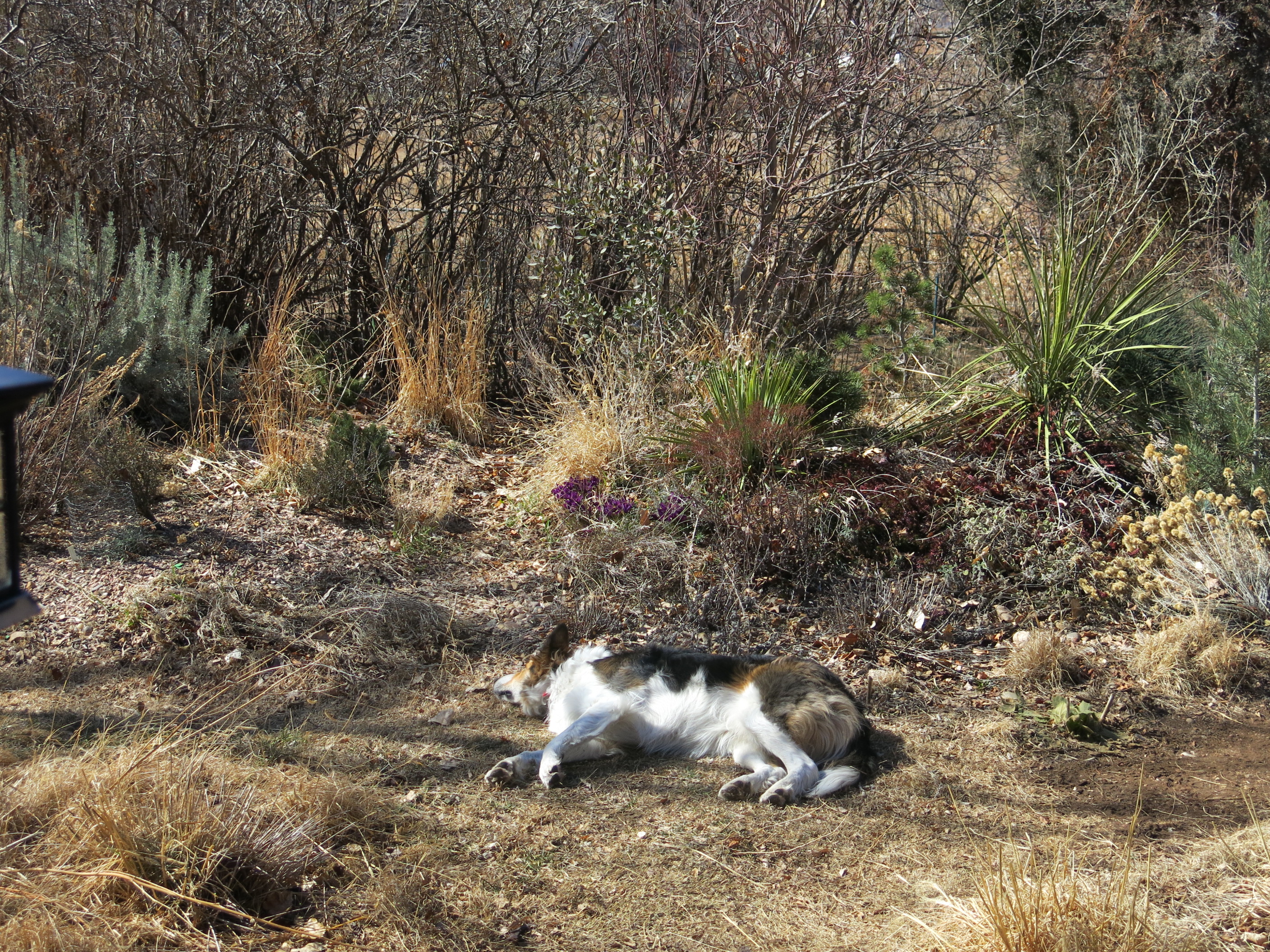 Sometimes I lie right next to the guy I live with when he works in the garden, which he likes, too. He told me that Chess, the purebred border collie who lived here before me, used to lie right next to the lady of the house when she worked in the garden, so there’s a kind of continuity there. Sometimes you need continuity, and sometimes you don’t. That’s what he said.