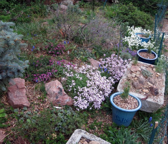 Still, things are flowering, just like they always do. The rock garden, the one called “Mount Zot”, is full of flowers. Arabis and daphnes, mostly.