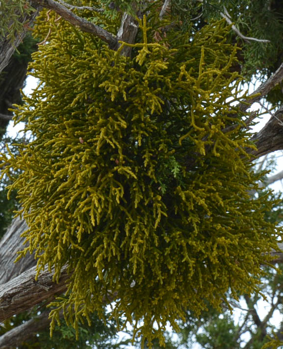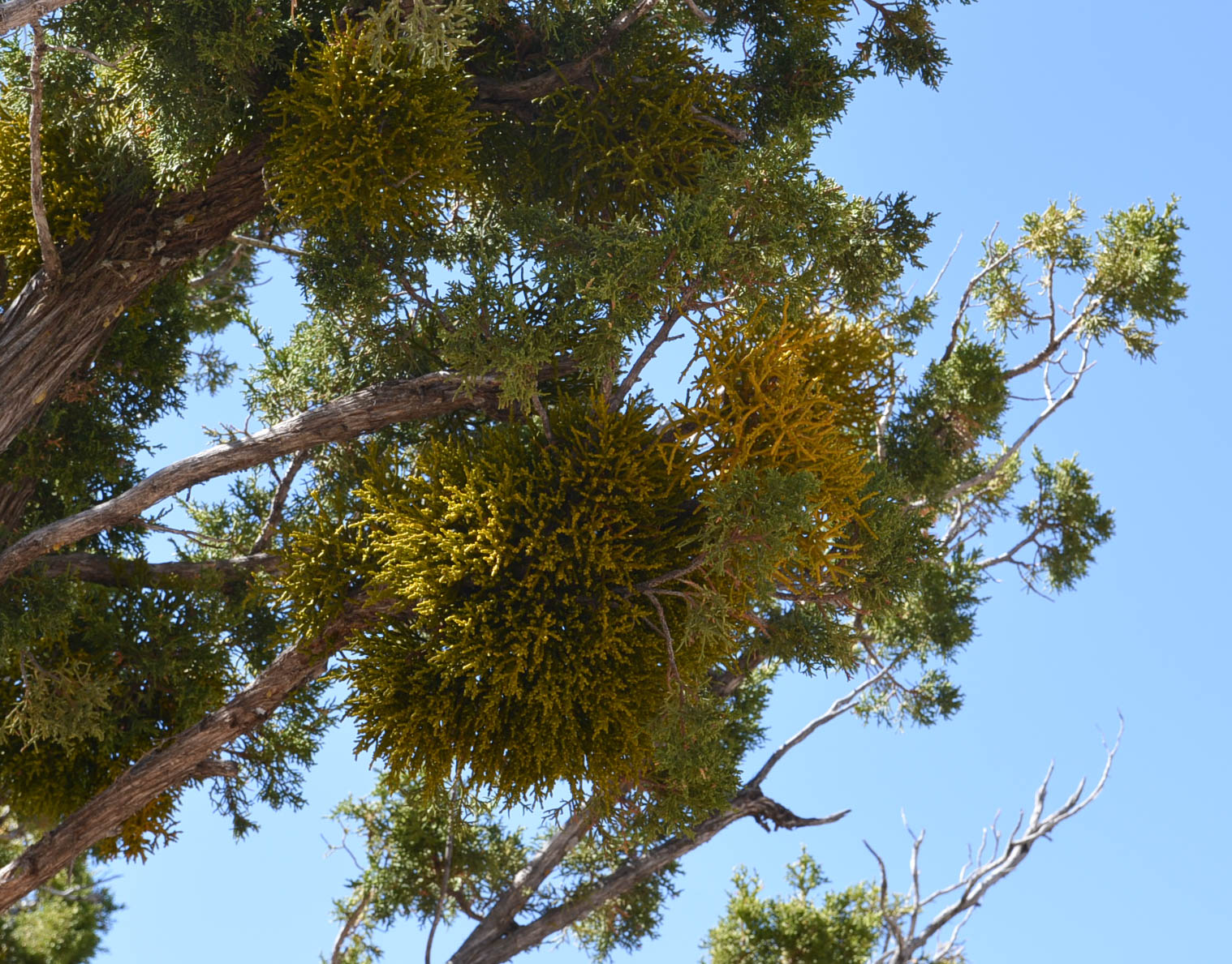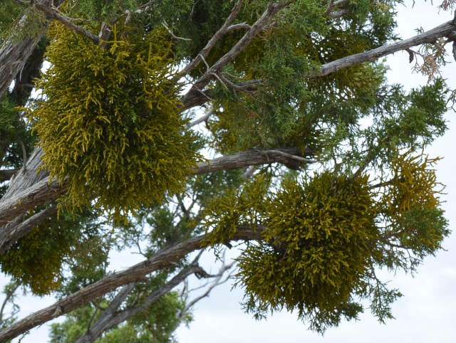 The place at which they stayed was surrounded by junipers and there was mistletoe growing in them.