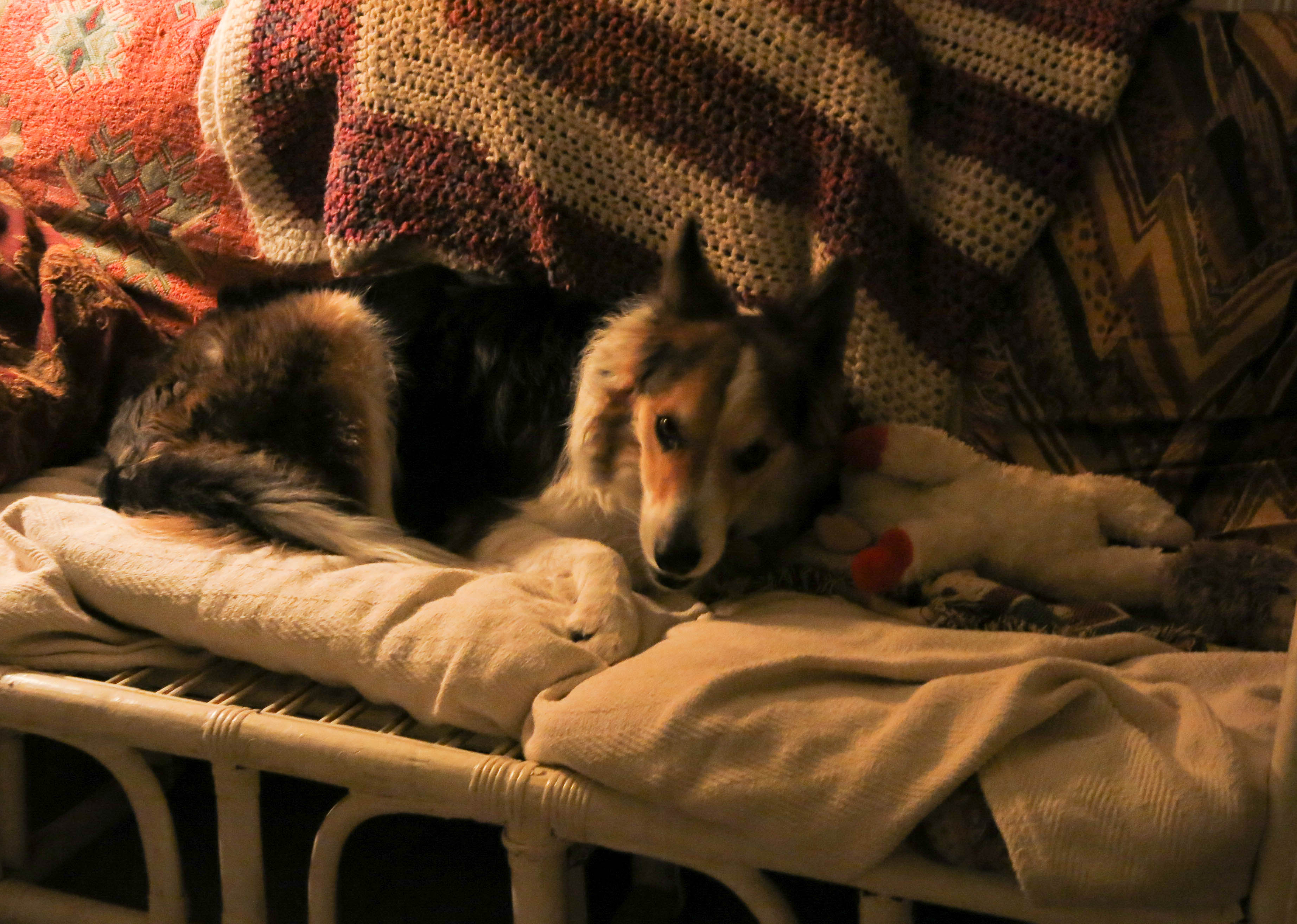 Yee Gads. Snow this late in April is reason enough to move way, way far way, farther even than the way back. But I suspect that this kind of April showers is way OK for a pure bred boarder collie, bred to the heartiness of the highlands and all, altho that last shot of you snuggled up in the sweet spot tells me that you appreciate the comforts of al things cozy.