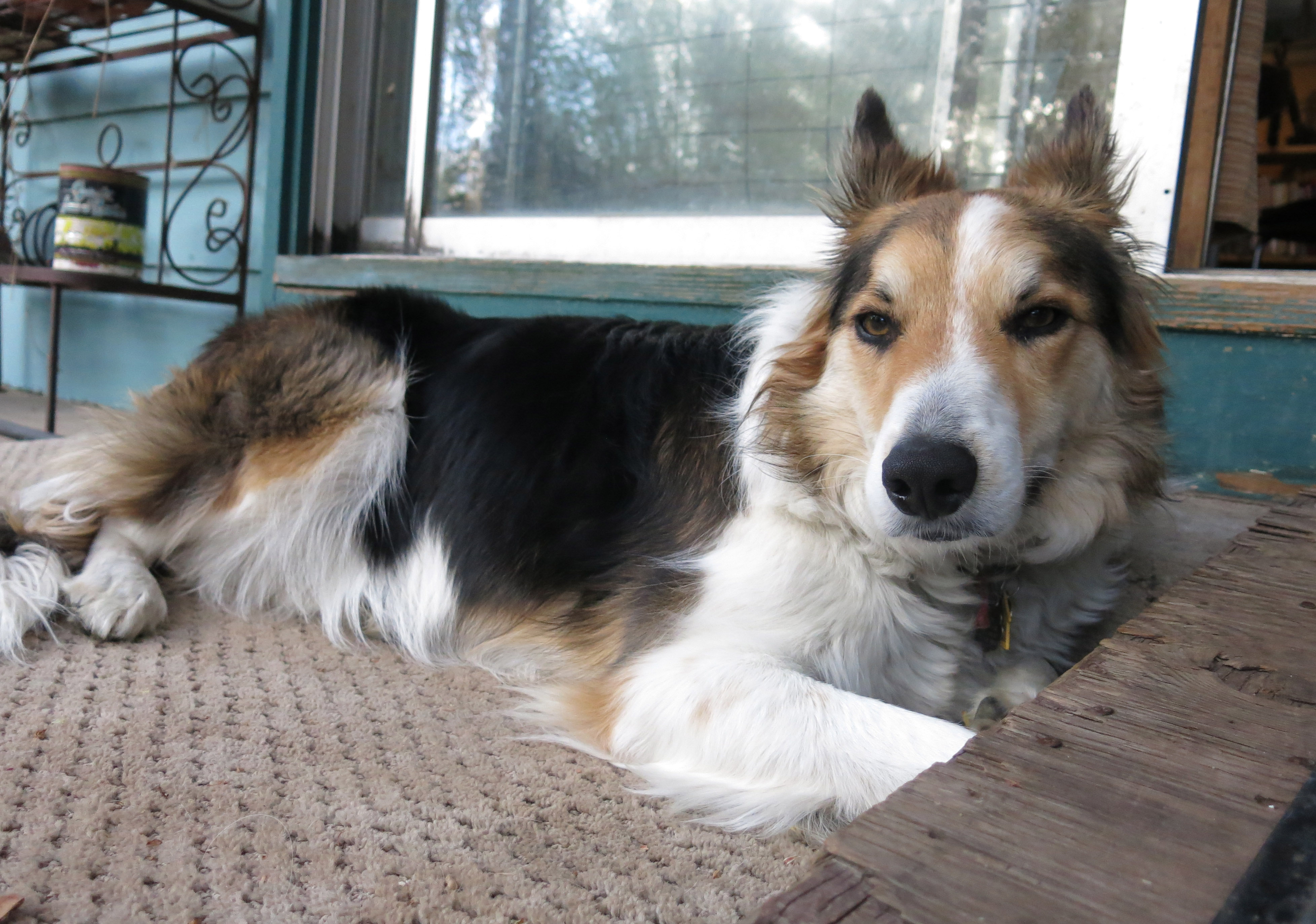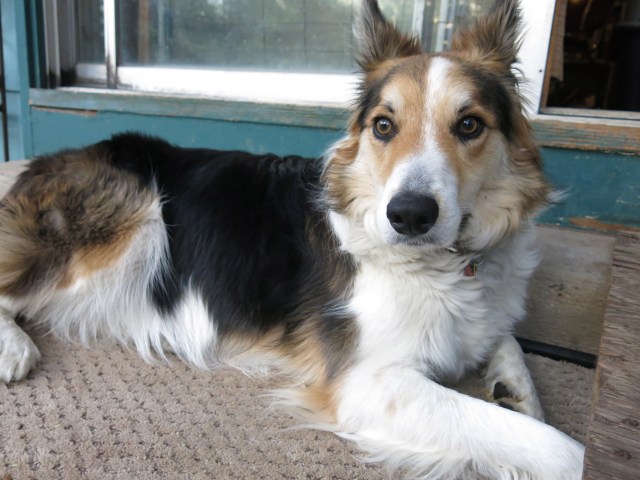 Thanks. The guy I live with isn’t sure why my ears are so mobile, since there was another purebred border collie who lived here, Pooka by name, who had radar ears, and he could move them a bit, but not as much as I can. It was all dark and thundery here today, and it even rained some. I didn’t like it. It’s a good thing I have a fort to hide in. (I have two forts, but the downstairs one is my main one.) Still, some gardening stuff got done.