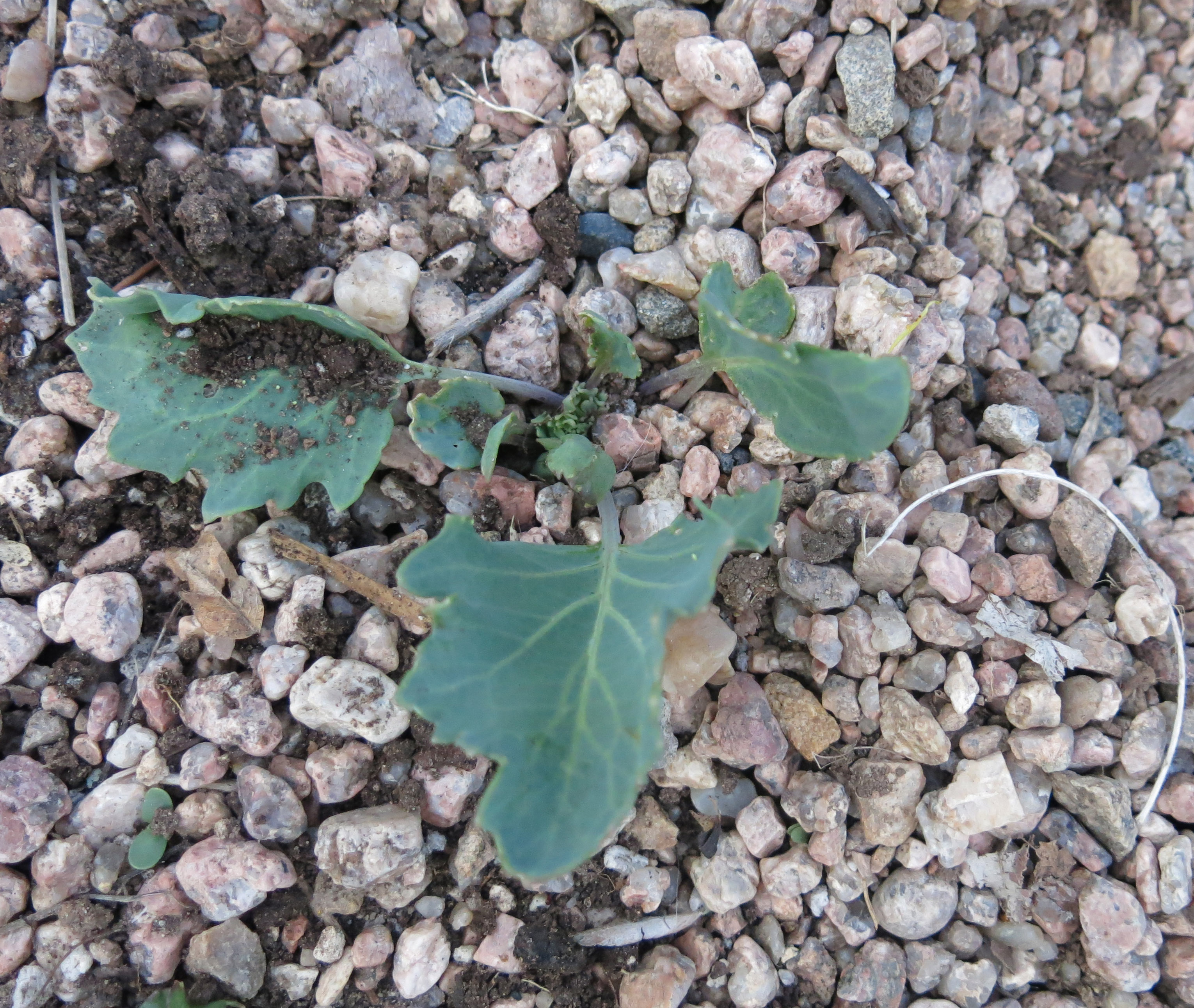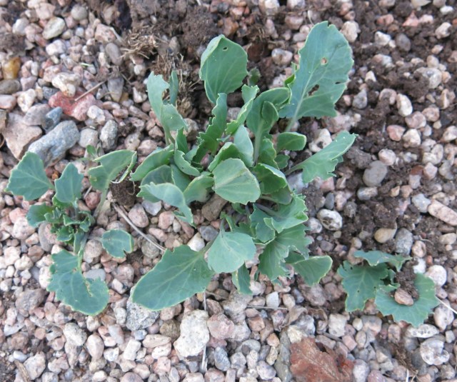 I guess the sea-kale is going to be happy there, after all. So he moved the big plant back, next to these, to keep them company.