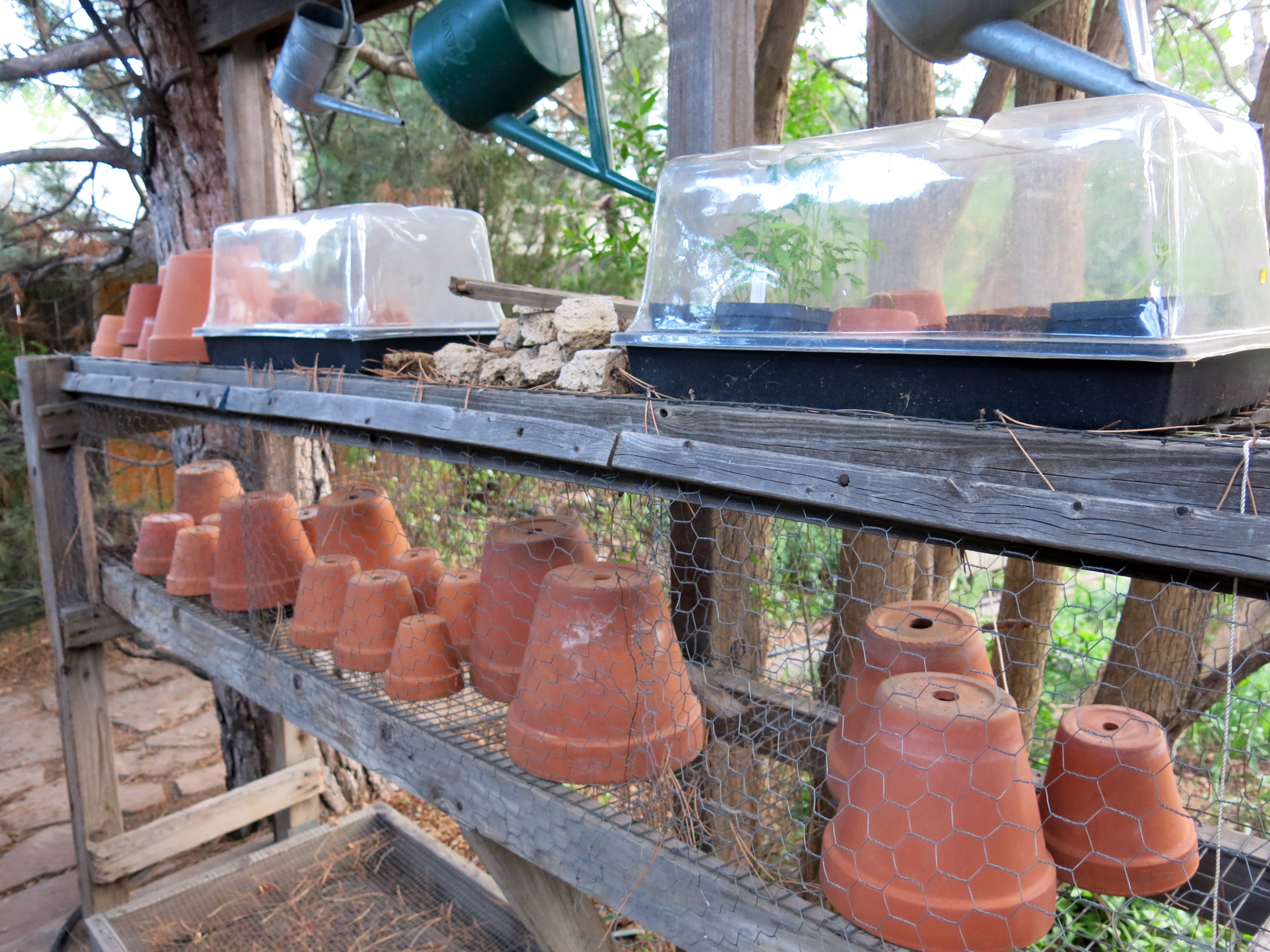 Also today, more pots went out on the patio. so they could get sun. He says that seedlings need sun, but they have to get accustomed to it slowly.