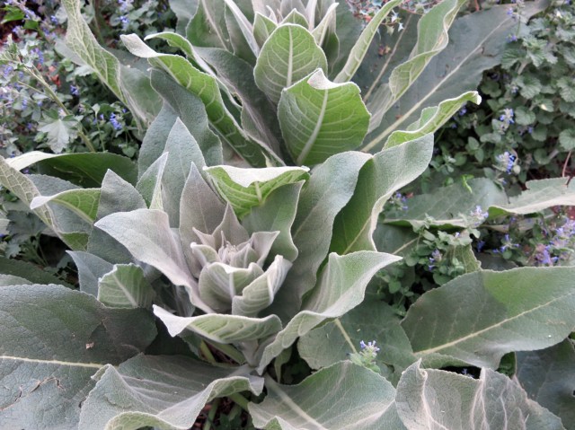 For the first time ever, the mulleins have grown huge. These are Verbascum bombyciferum.