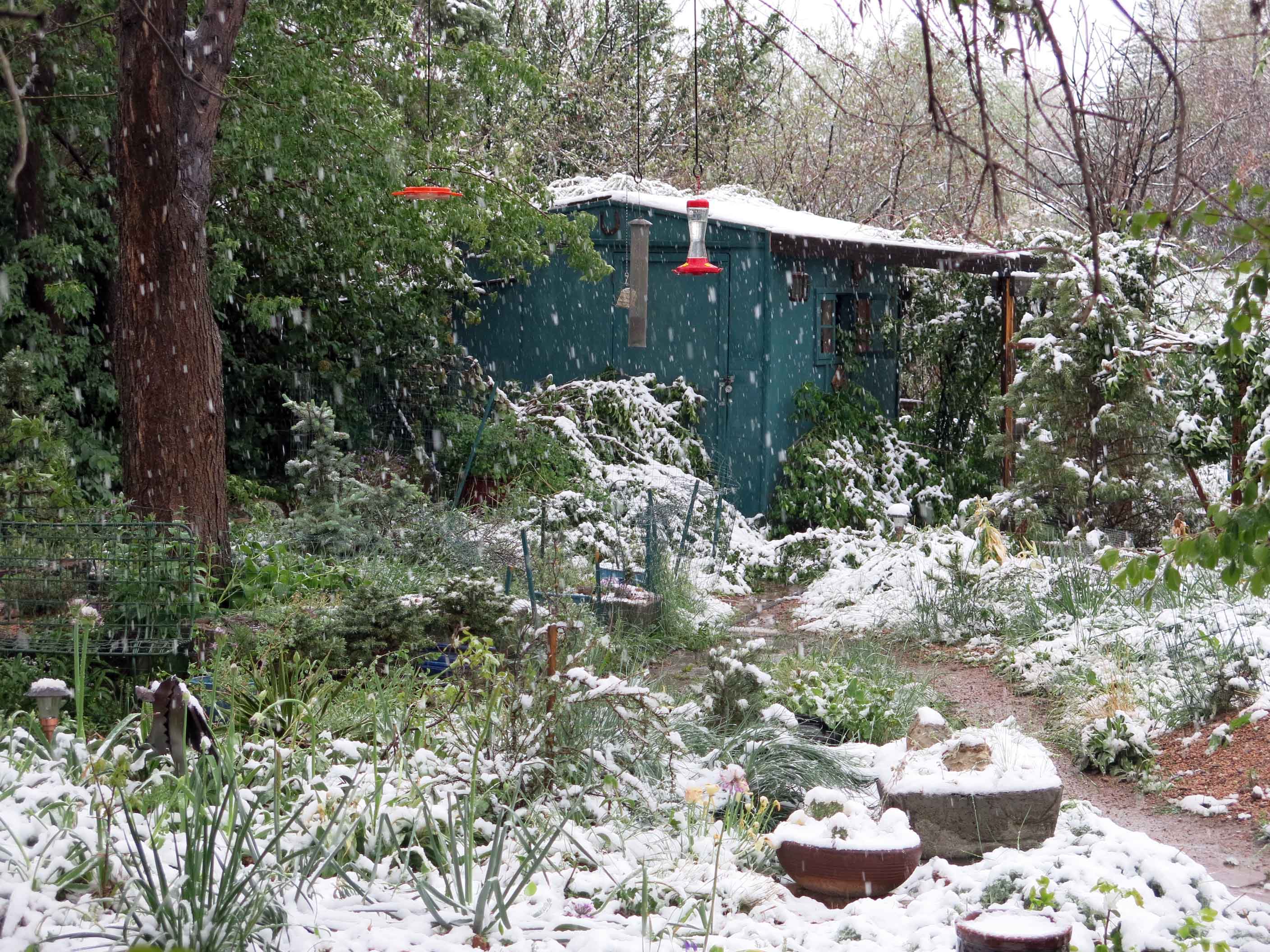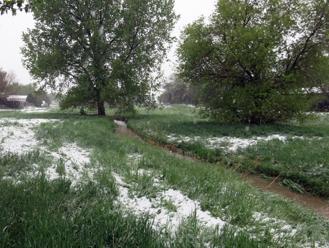 Is the snow still there? We’d like to roll around in it. Trying to lay irrigation tubing and just about to have heat stroke. I’ll bet unyielding irrigation tubing is something TGYLW doesn’t bother with very much. How low did the temperatures go? I try to imagine the kind of person who would throw a sofa into a creek and unfortunately it isn’t hard. Sigh.