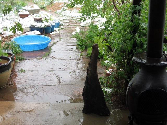 Yesterday, or maybe the day before, I forget, this thing appeared on the back patio. It’s a wooden thing.