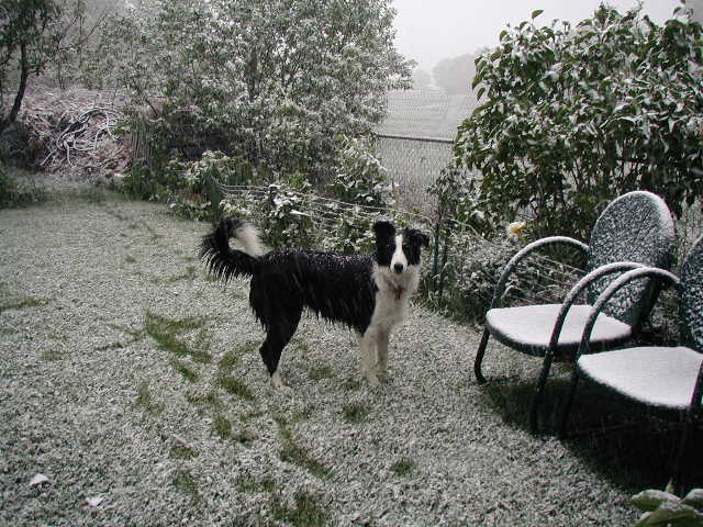 Greetings and salutations, everyone; yes, once again it is I, Mani the purebred border collie, filling in for the guy I live with, and here to bring you the latest news from our very damp garden, and also to bring you a sentimental post. You may remember me from such posts as “A Short, Sentimental Post”, among so many, many others.