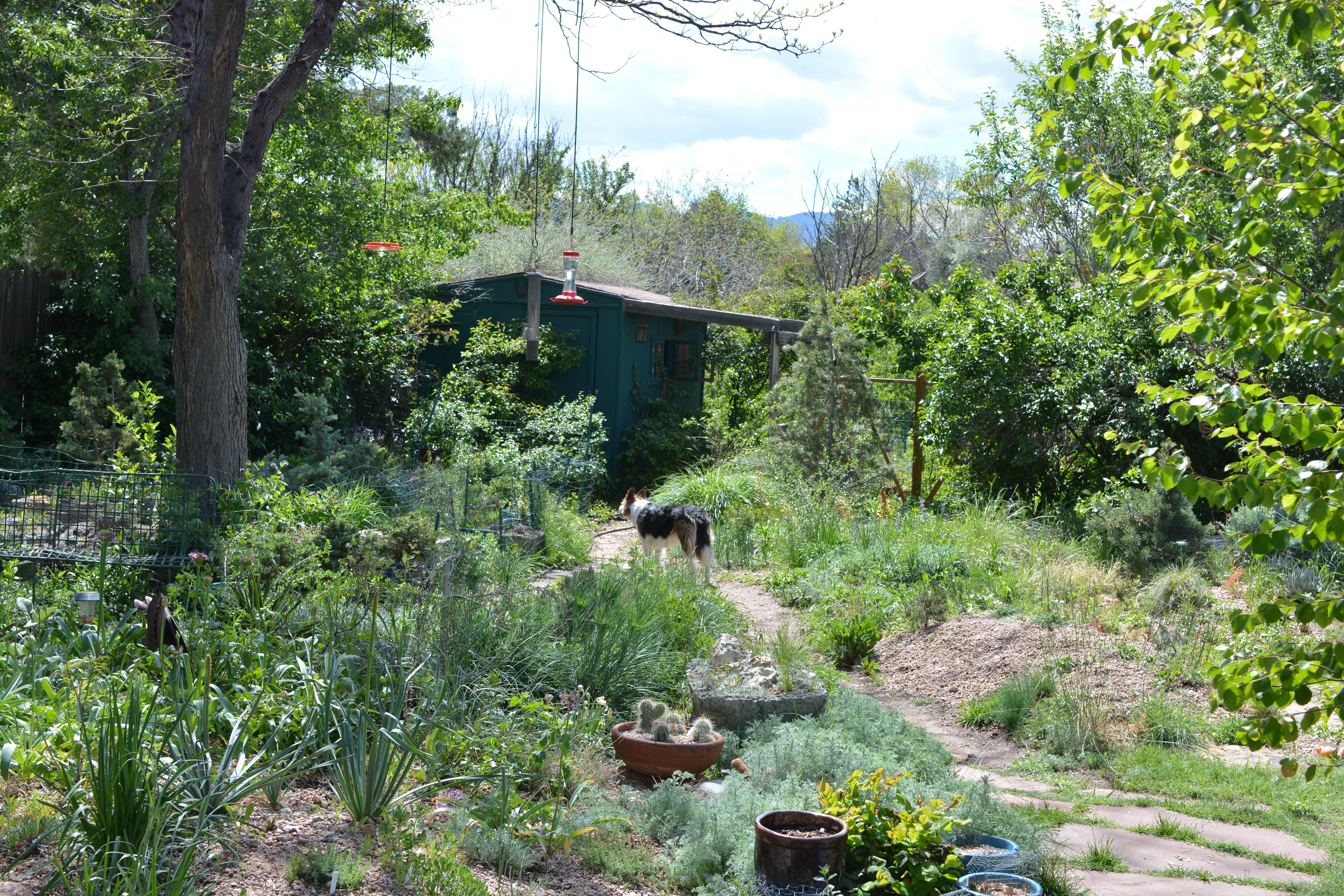 All the rain has made the garden super green. The snow helped, too. You can see the Kentucky coffee tree out in the “way back” hasn’t leafed out yet. It’s those branches sticking up to the right of the shed.