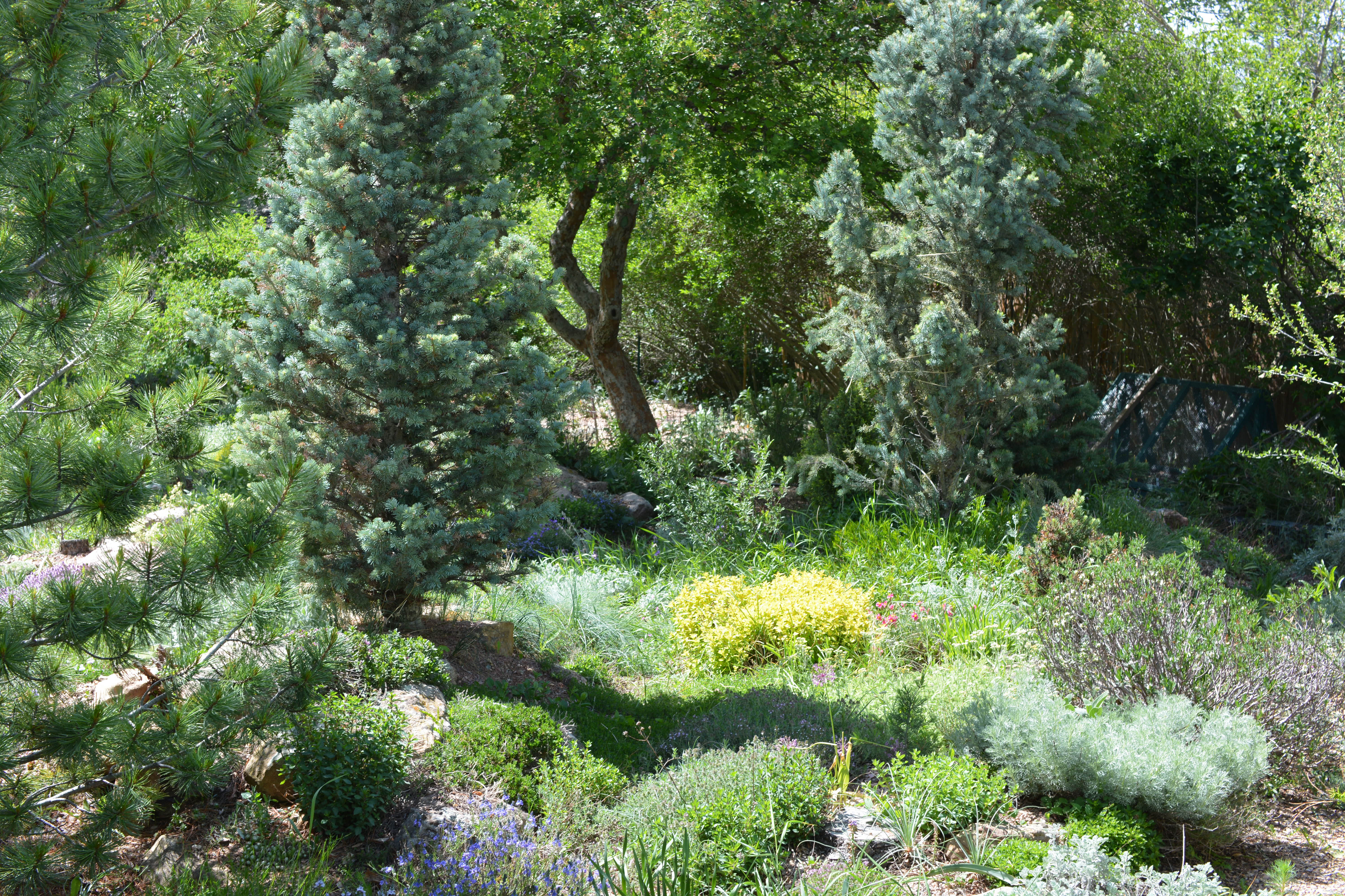 The “old rock garden”, with a view to the Russian hawthorn, with its weirdly-growing branches.