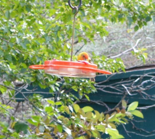 Also, the guy I live with said that a western tanager has been at the oriole feeder for the last two days, and he really wanted to take a picture of it, but it always flies away when it thinks it’s going to have its picture taken. It’s yellow with a red head, so pretty noticeable.