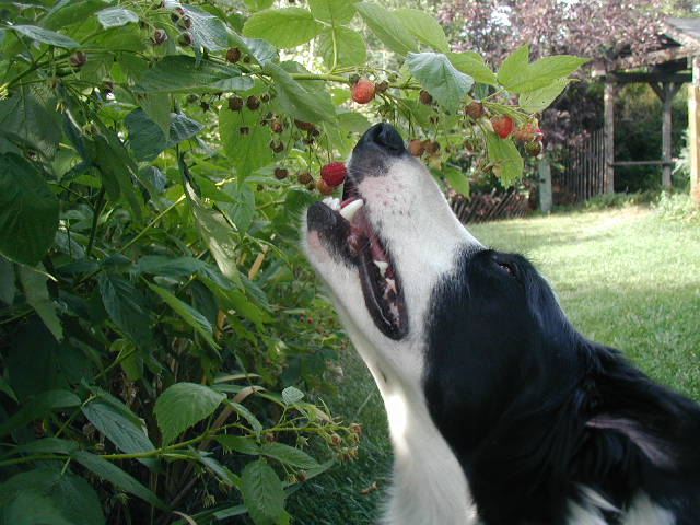 Here’s Slipper learning to pick his own raspberries and eat them.