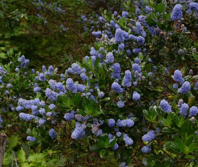 There were a lot of ceanothus in flower, too. We have a couple in the garden here, but they’re not blue-flowered and heavily scented like these were. (This one is Ceanothus thyrsiflorus ‘Skylark’.)