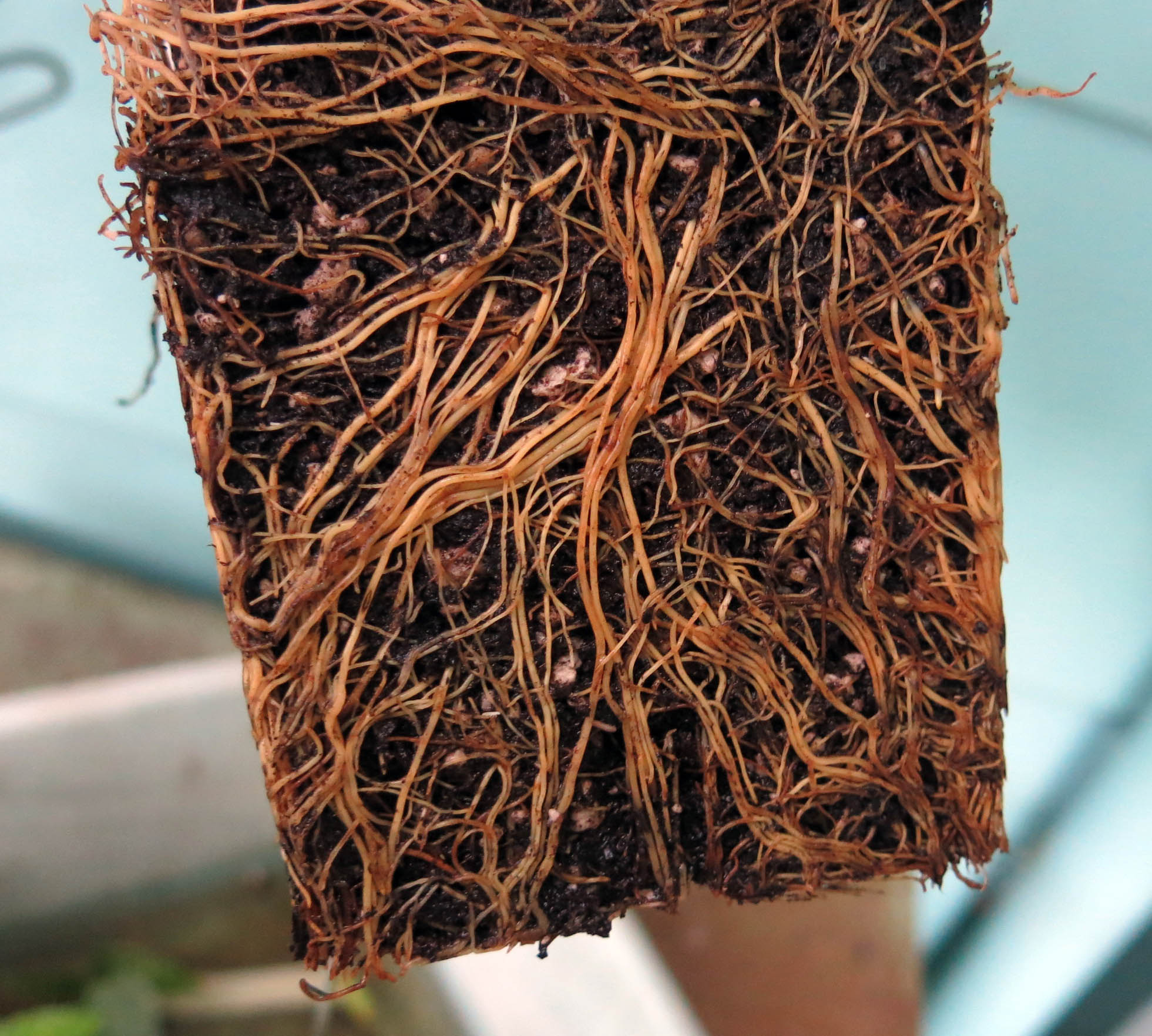 The epimediums came from Edelweiss Perennials and when he removed one from its pot, he said that this was how a root ball (not really a ball but that’s what we say) should look; it looked very excellent.