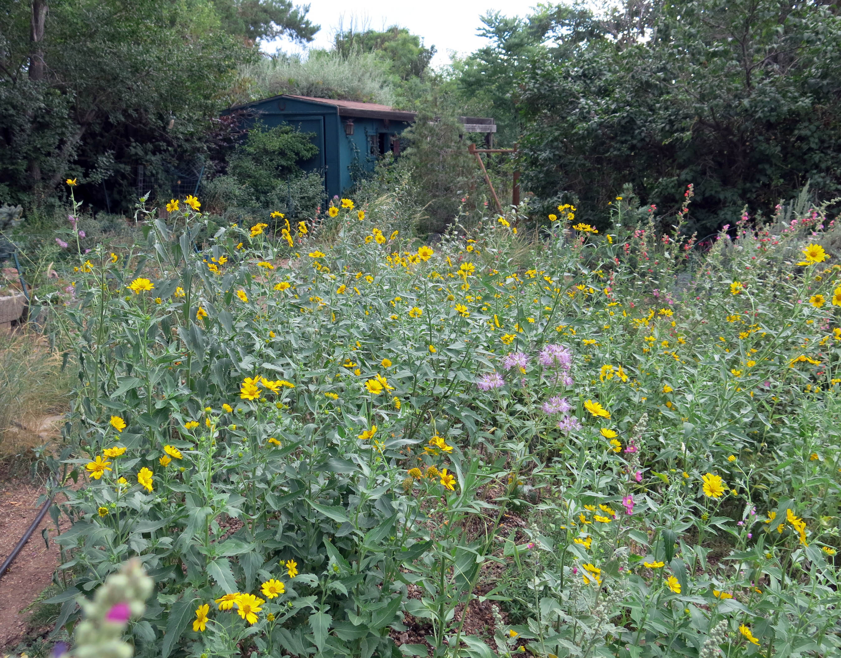 Buffalo grass is much more mannerly, since it expands by runners along the surface. It does need water, here, but not as much as green-lawn grasses. Nowhere near as much. The lawn in the “way back” was mowed once this summer, and then watered, to get it going again. Goes dormant in winter. (So does bluegrass, here.) I would dislike hot summers, but the guy I live with says the hotter the temperature, the less likely it is for us to get bad storms, which seem to be increasingly common around here. I wouldn’t mind a beep on the nose.