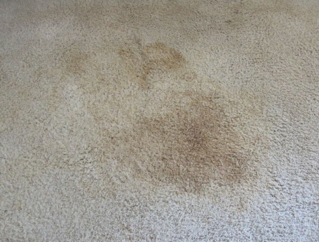 You may recall that a few weeks ago we were plagued and mystified by an awful smell, the source of which neither of us could locate, and then it suddenly went away, well, now there are two large mysterious stains on the living room carpet.