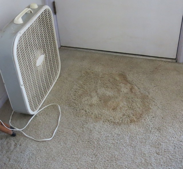 He’s been shampooing, spraying, soaking, blotting, yelling, cursing, every day since then. Every time he does something the stains get larger. They’ve gotten down to the base of the carpet and when the carpet is soaked, the carpet apparently wicks the stain to the surface again. Lately he’s been using the wet/dry vacuum cleaner to suck up the water (it makes a horrific noise), hoping that eventually, the stuff at the bottom of the carpet will be completely vacuumed up.