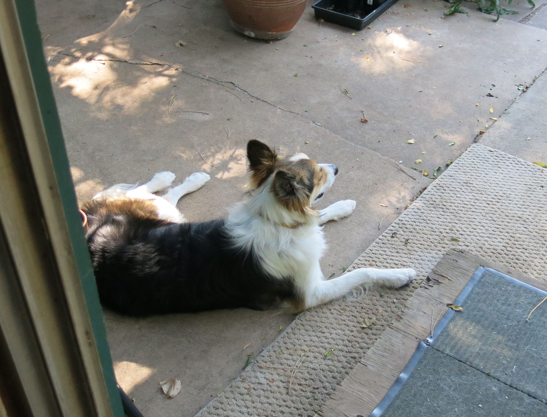 So, with the carpet stains, and the eye allergies (including a lot of complaining about people burning wood at this time of year), and being ruthlessly brushed, I’ve had to put up with a lot, lately. I spend most of my time lying on the patio. There’s plenty to look at, and guard, if necessary.
