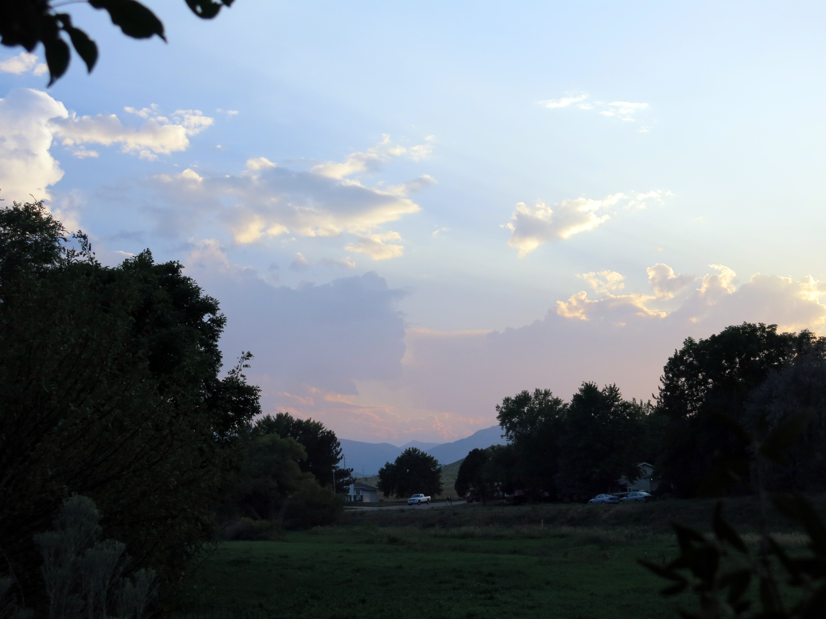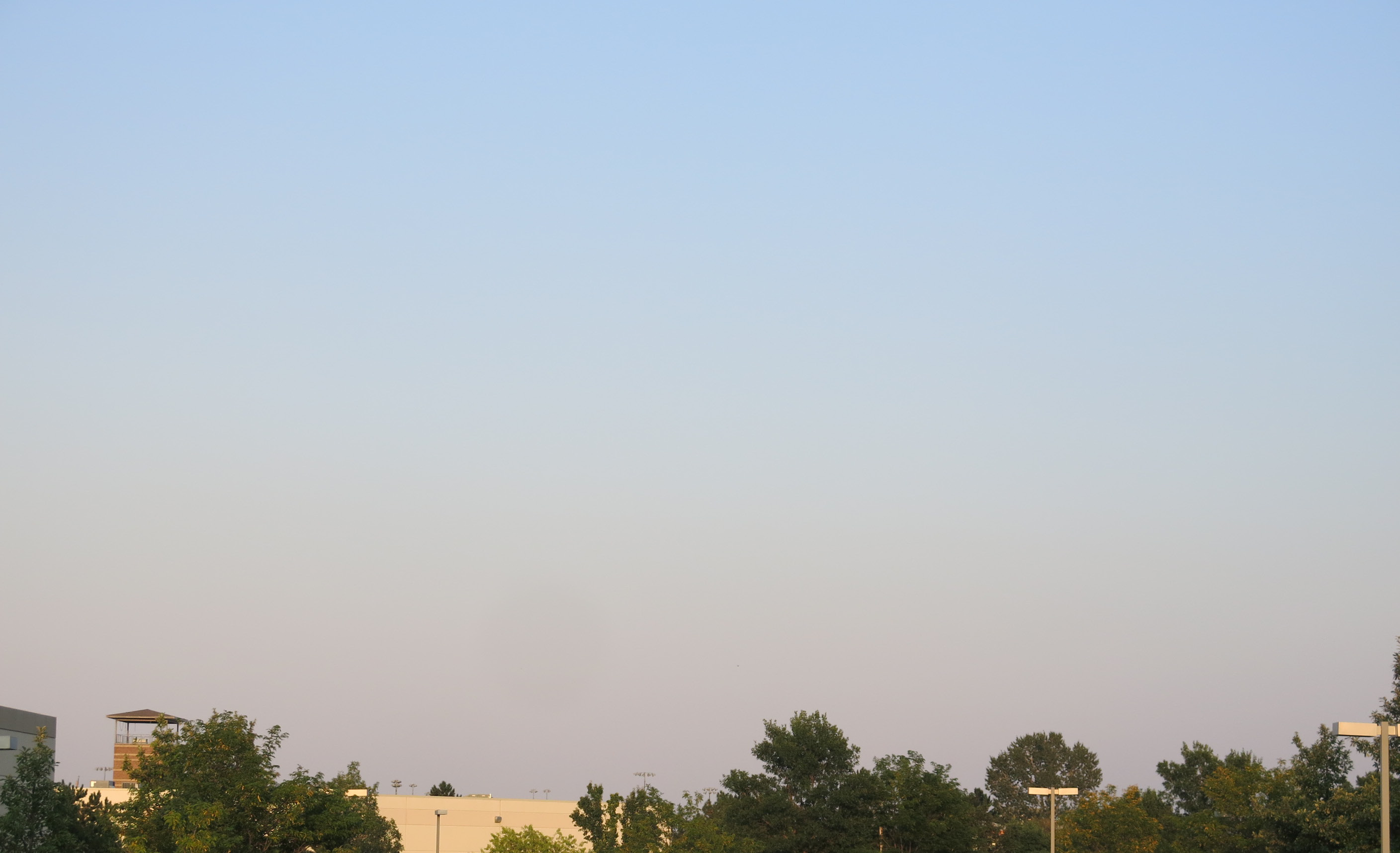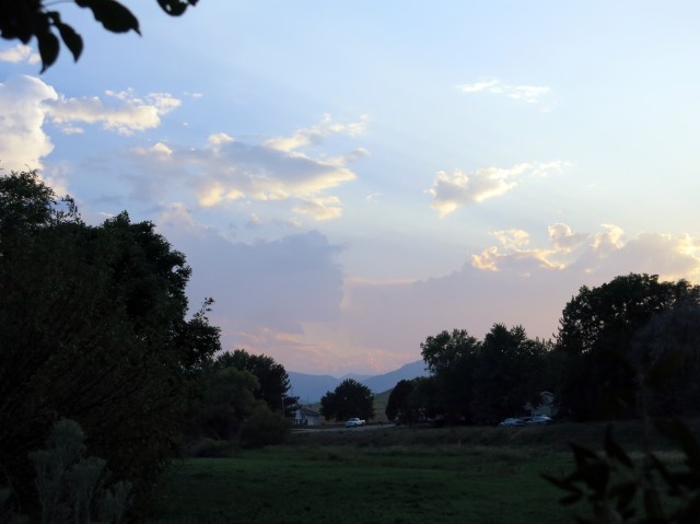 He’s been having a lot of trouble with his eyes, all sticky and burning and blurry, which makes looking at the computer difficult. These eye allergies. The air is filled with smoke from wildfires, too. You can see it in this picture, looking east, taken on my evening walk.