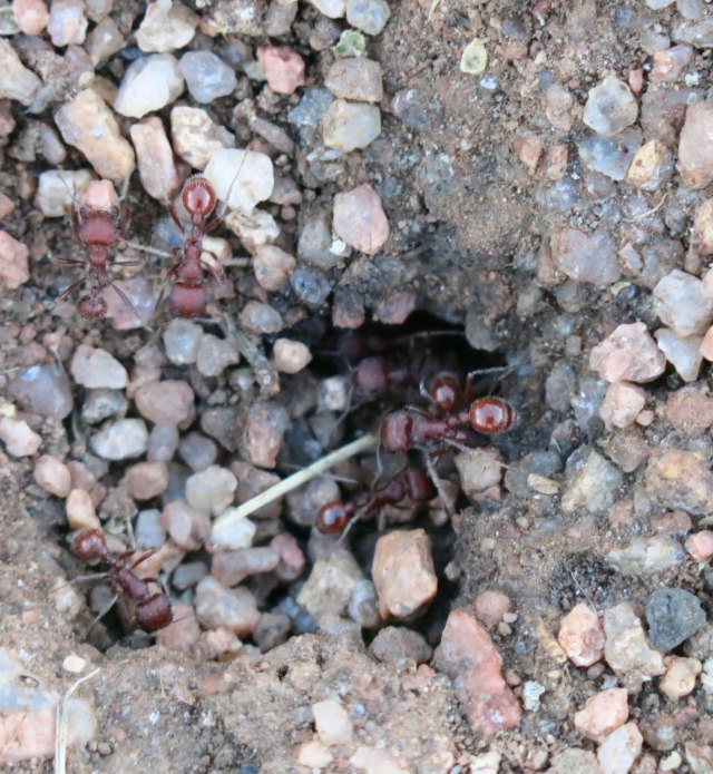 We stopped to look at some red ants, too. The guy I live with said I should call them “harvester ants” instead of “red ants”, even though they are red.