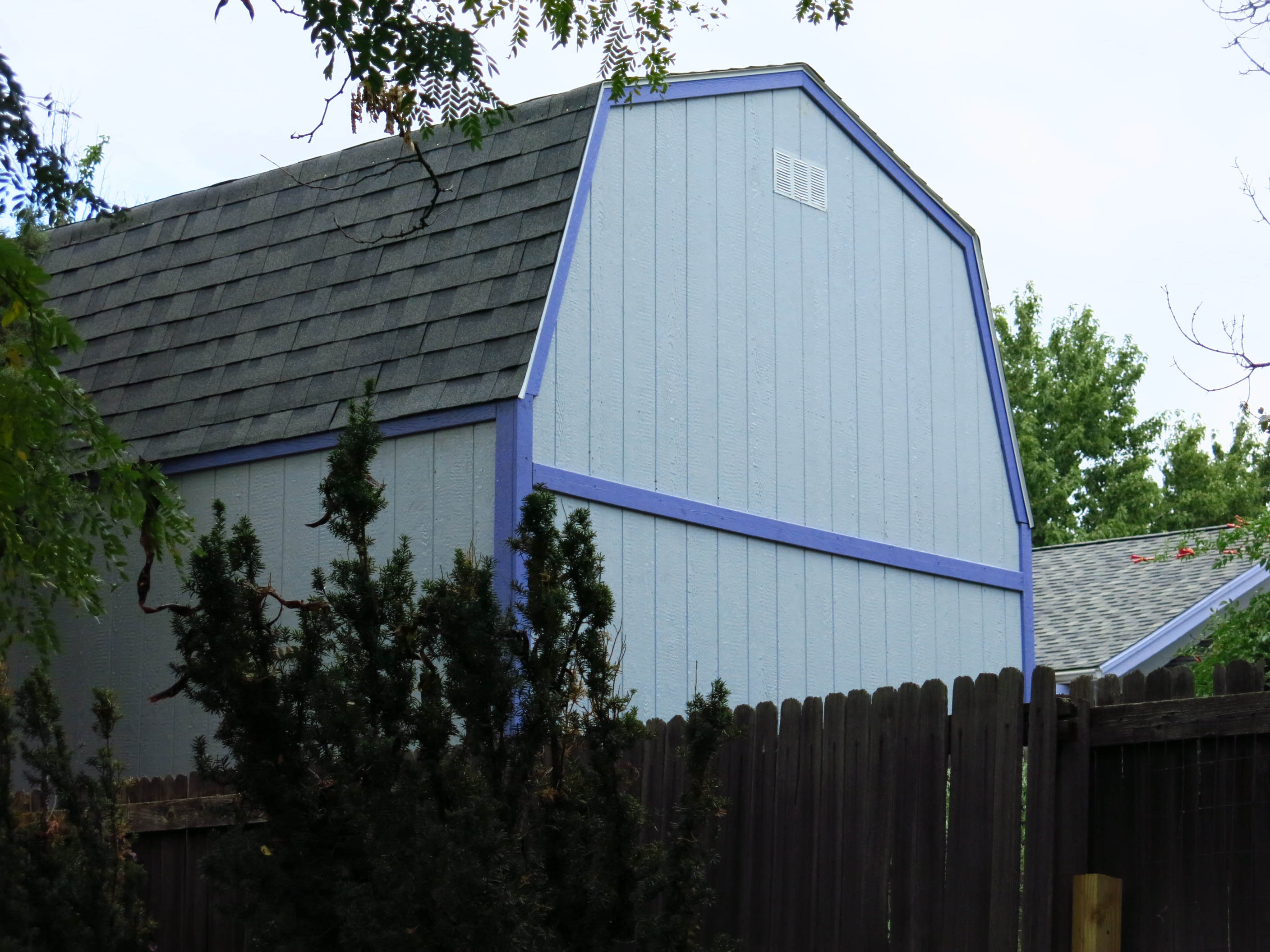 Why, that shed is a stunning example of the Appraisal Institute’s “highest and best use” of your neighbor’s property. Will they have a shop with loud machinery? I wonder if they got a permit. It’s kind of close to the fence. Speaking of stunning, Mani, you are! And so are those sunflowers.