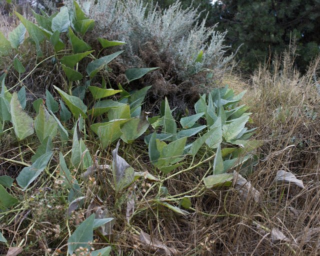 As we got onto the path, the guy I live with said there was one tree which was slightly different. This picture isn’t in focus at all, but it’s Populus balsamifera, the balsam poplar, which, here, is really a montane species. He said that maybe seed floated down the creek from the mountains. The leaves and stems are coated with a pleasant-smelling resin, or something like that. I’ll wait for the lecture at Day Care in order to understand this better.