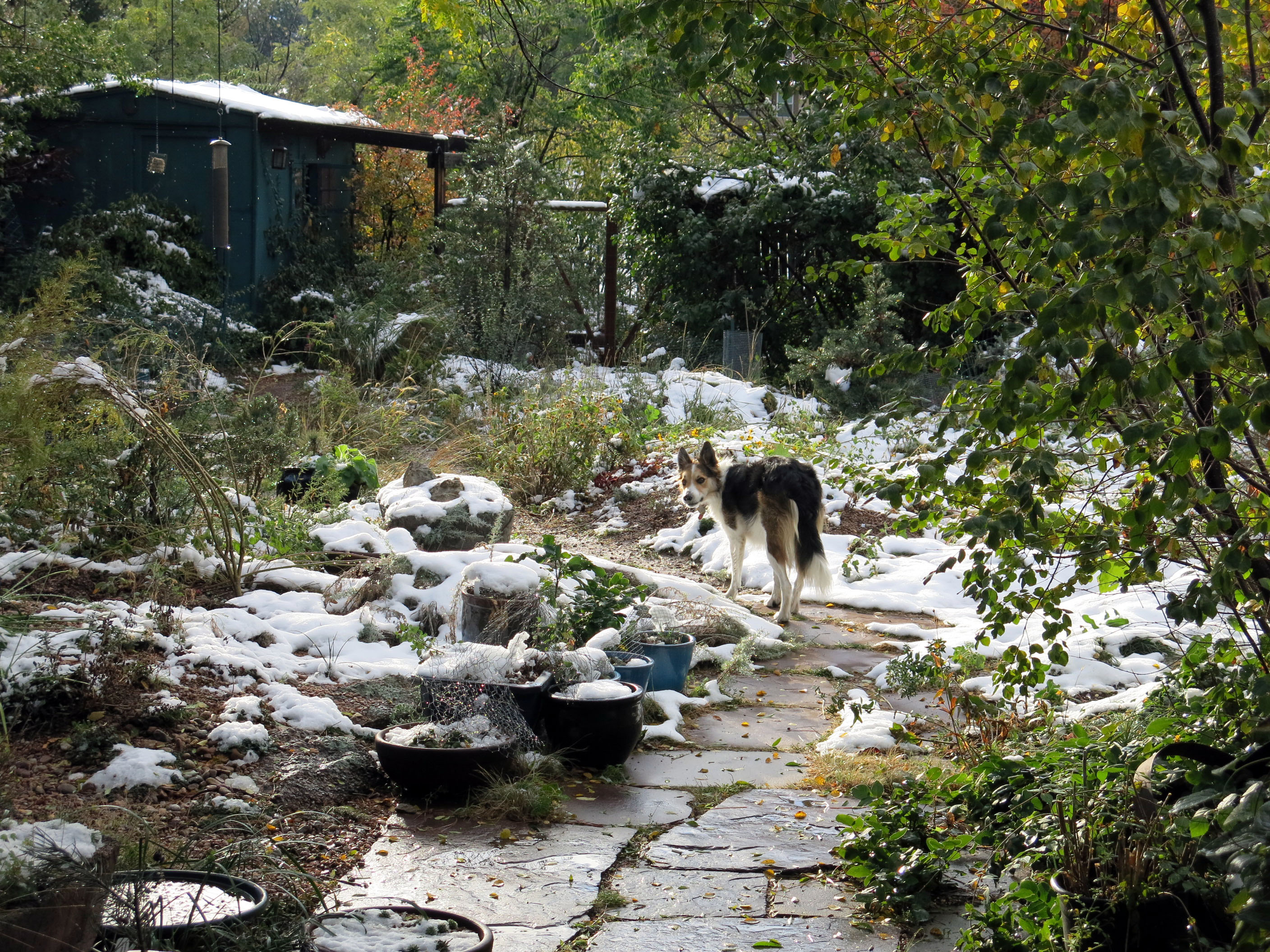 Greetings and salutations, everyone; yes, once again it is I, Mani the purebred border collie, filling in for the guy I live with, and here to bring you up to date on the latest news from our garden. You may remember me from such posts as “One Hundred Tulips”, among so many, many others.