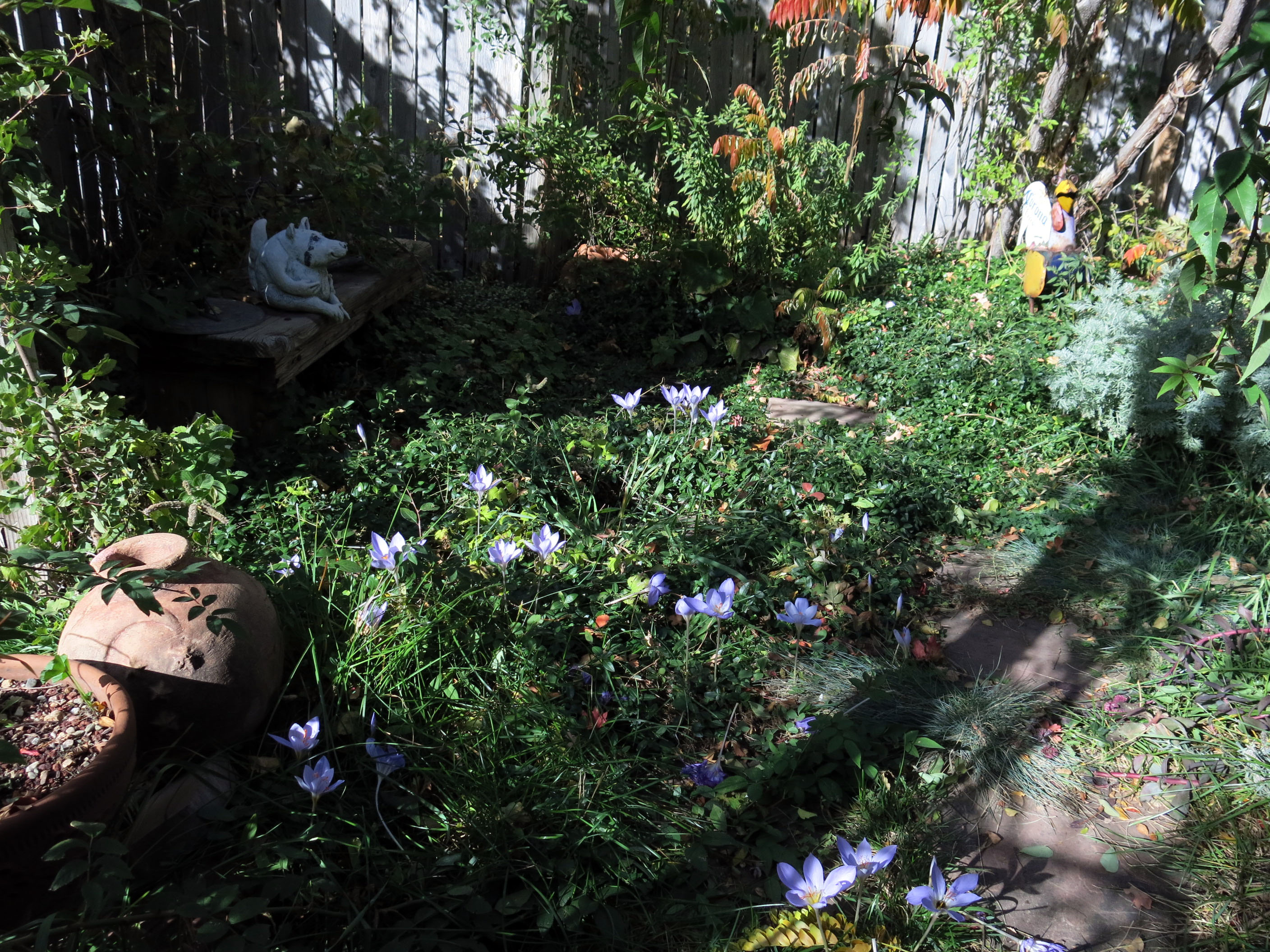 Lots of Crocus speciosus in “the enclosure”. The crocuses have seeded all over the garden.