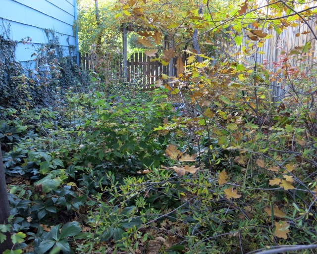 The shade garden has become almost impenetrable from the east side. You know all those pictures of well-ordered, manicured gardens in garden books? This isn’t one of them.