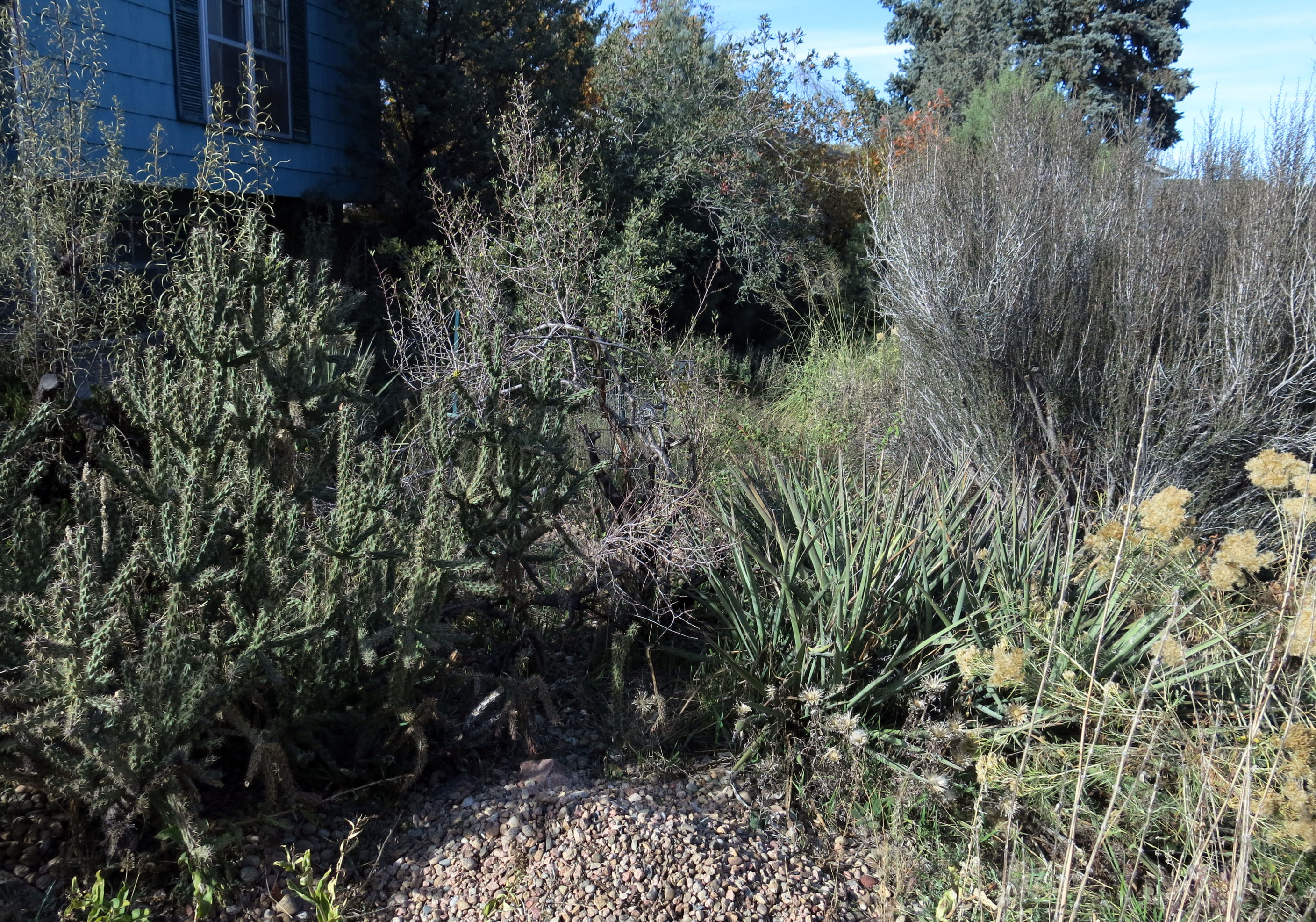 The guy I live with says that you probably couldn’t get two botanists to agree on which yucca species grows where, so we just call them “the yuccas”. There are lots of other yuccas here, but they all have names. Botanical names, I mean.
