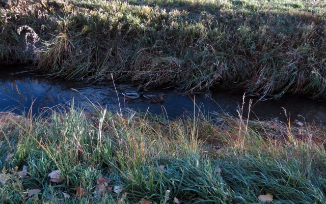 There is still water in the canal. Today I saw the ducks. The water level is a lot lower now.