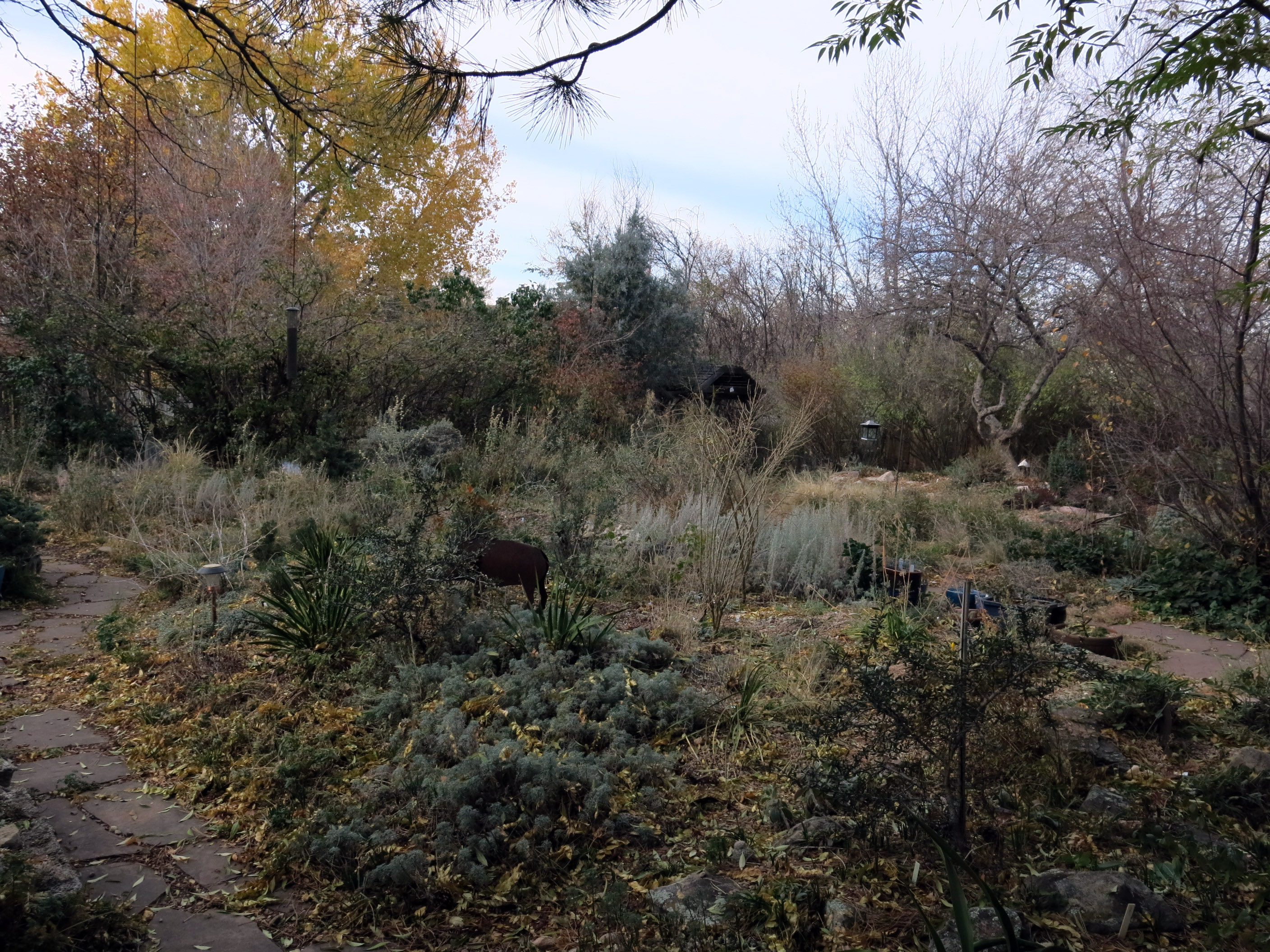 You can see the golden leaves from the honey locust all over the garden on the south side. The cottonwood out in the field is still spectacular.