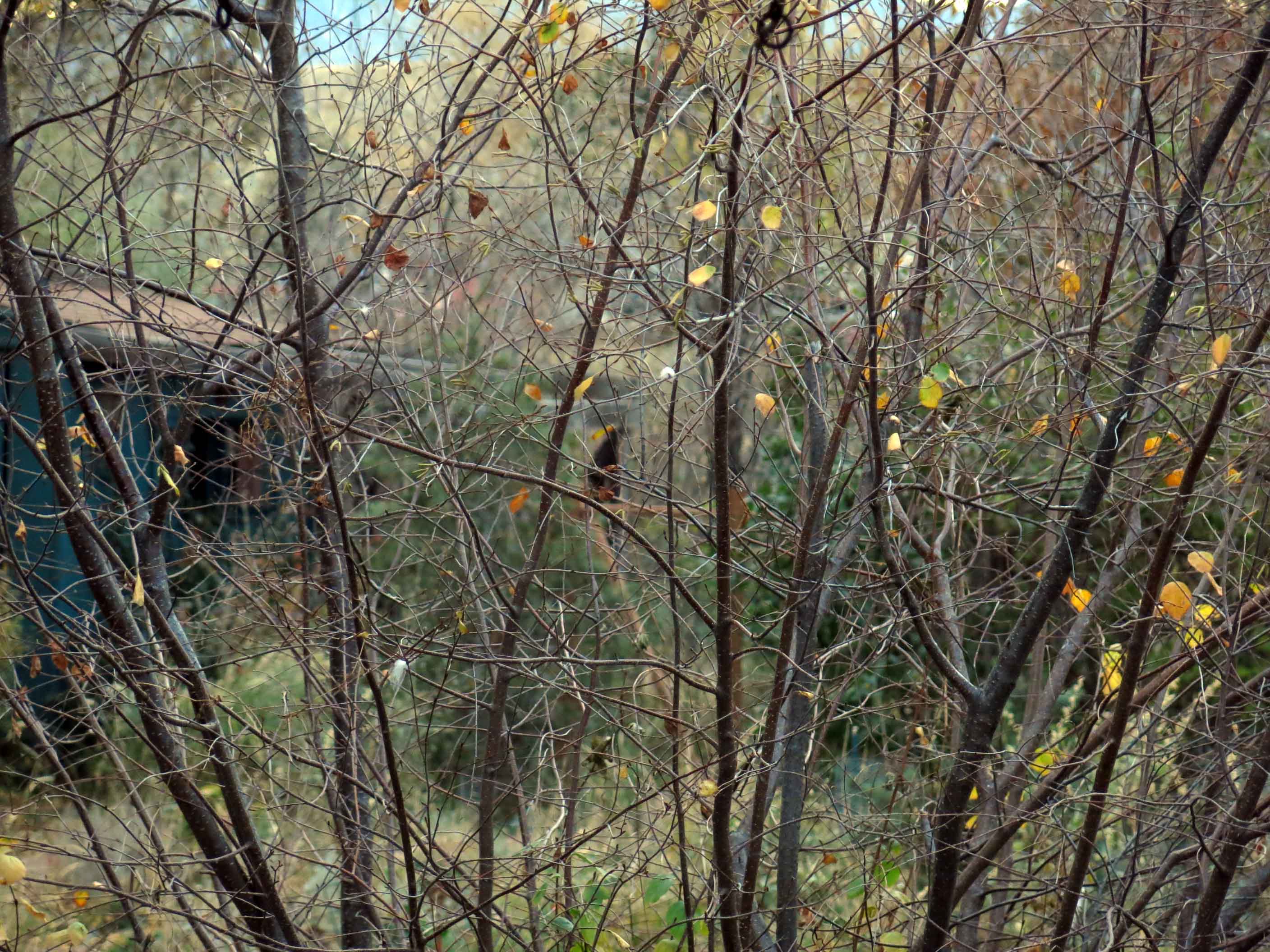 He looked out of the kitchen window, through the birch tree, and saw this: