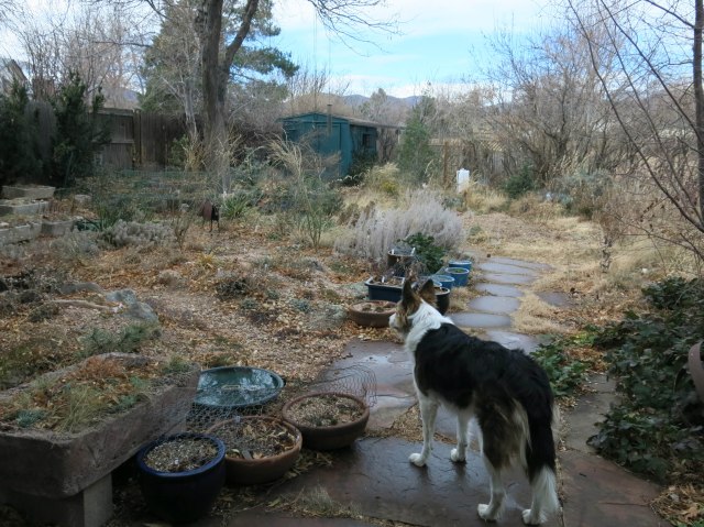 Greetings and salutations, everyone; yes, once again it is I, Mani the purebred border collie, filling in for the guy I live with, and here this evening to show you pictures of the sunset, as well as some other things. You may remember me from such posts as “The Ugly Garden”, among so many, many others.