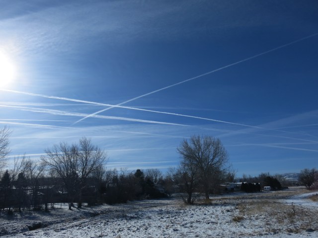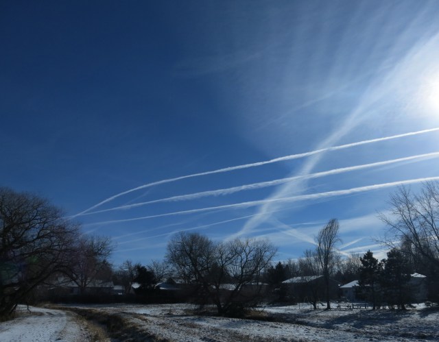 It was pretty chilly that day. On my morning walk, the jet contrails looked like they were frozen. Maybe they were.