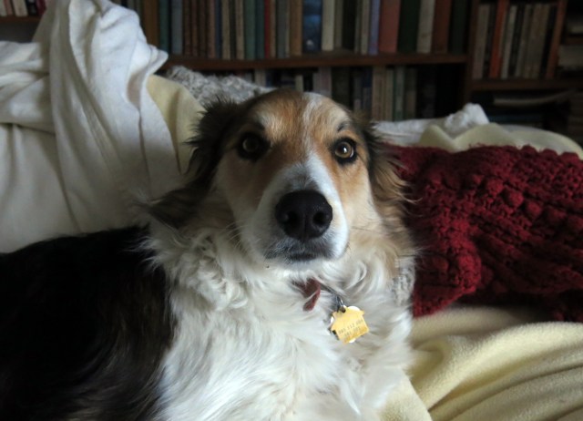 And he said the snow might be gone by June, so I guess I’ll be spending quite a bit of time walking on the long lead, sleeping on the bed, and on the couch. The guy I live with has been sitting with me on the couch in the evenings, and I like that a lot. We listen to records. I guess they’re called CDs now, but about his favorite thing to do most of his life was to sit and listen to records, so he still calls them that. Gardening always came in second.
