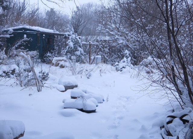 The guy I live with, who’s a worrier, as I mentioned a couple of posts ago, never worries about whether or not it will snow in the winter, and never, ever waters the garden in winter. And nothing bad has ever happened. He’s even had people over to look at the garden after a winter of no watering and they still think the garden should have been watered. The guy I live with said that people can freak out and water if they want to, but it’s not going to be done here.