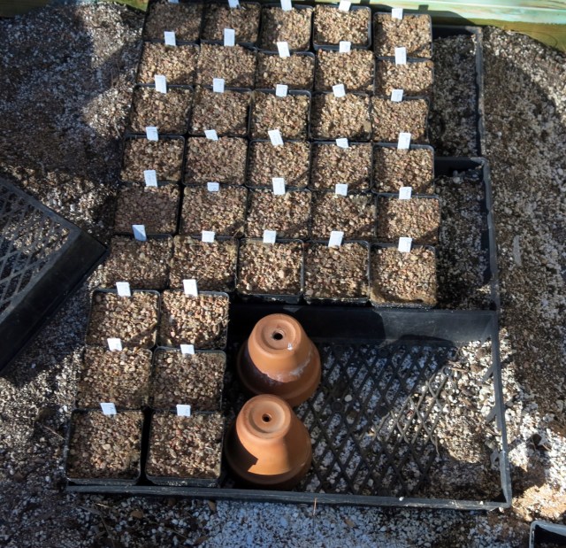 And all the seeds from Alplains, mostly penstemons, were sown and the pots put in the frame. The frame was supposed to have bulbs in it but still doesn’t.