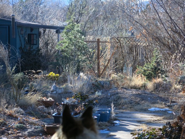 Greetings and salutations, everyone; yes, once again it is I, Mani the purebred border collie, hunter of voles, filling in for the guy I live with, and here to bring you the latest news from our garden. You may remember me from such posts as “Mostly Iceless”, among so many, many others.
