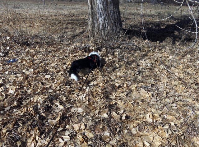 Here, by the cottonwood, I was certain that there was something lurking in the grass under the leaves.
