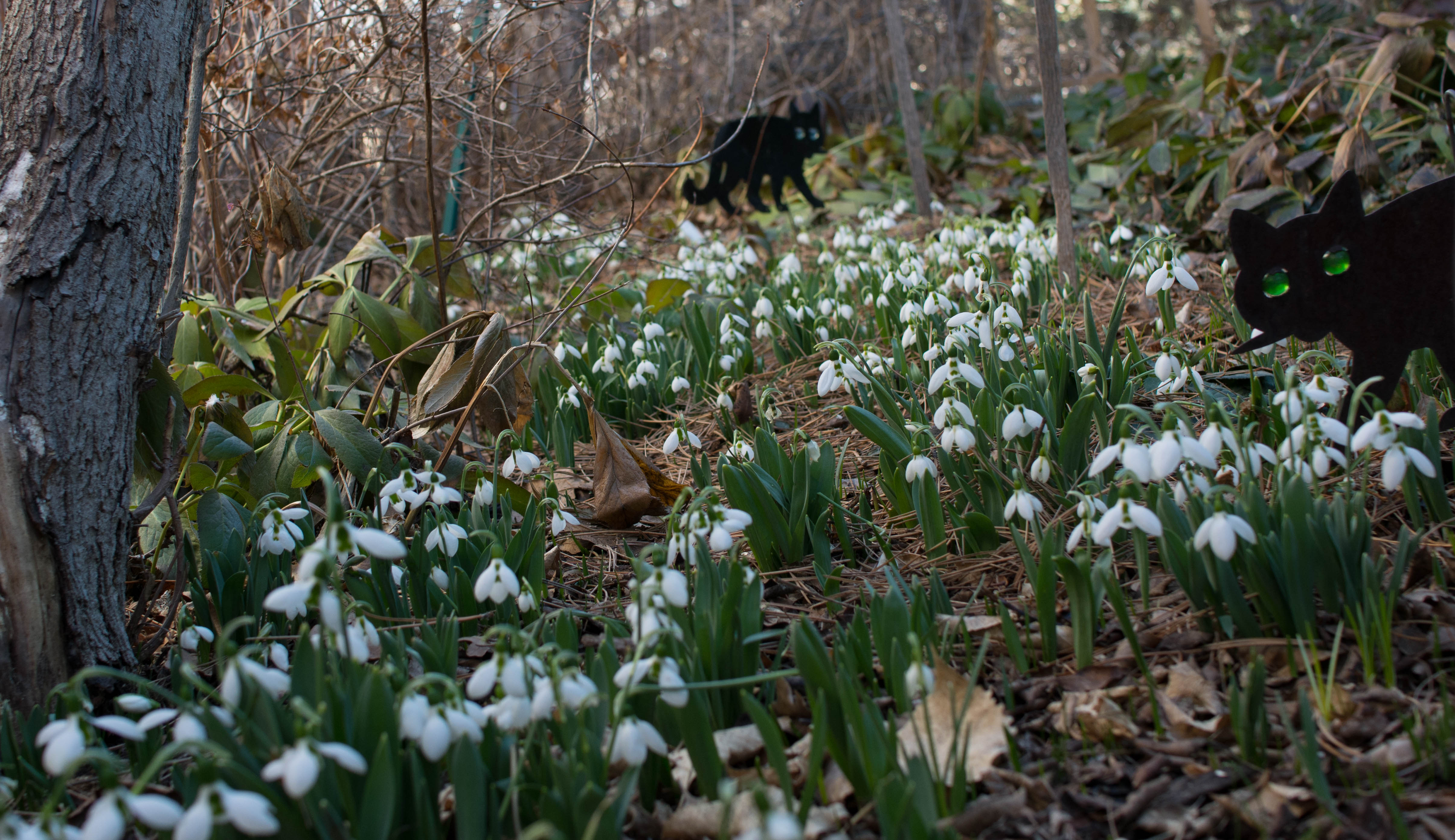 Those are French scare cats, if you didn’t know. I’ve talked about them before. They’re not made to scare the French, they’re made in France, to scare the birds so they won’t shred the snowdrop flowers.