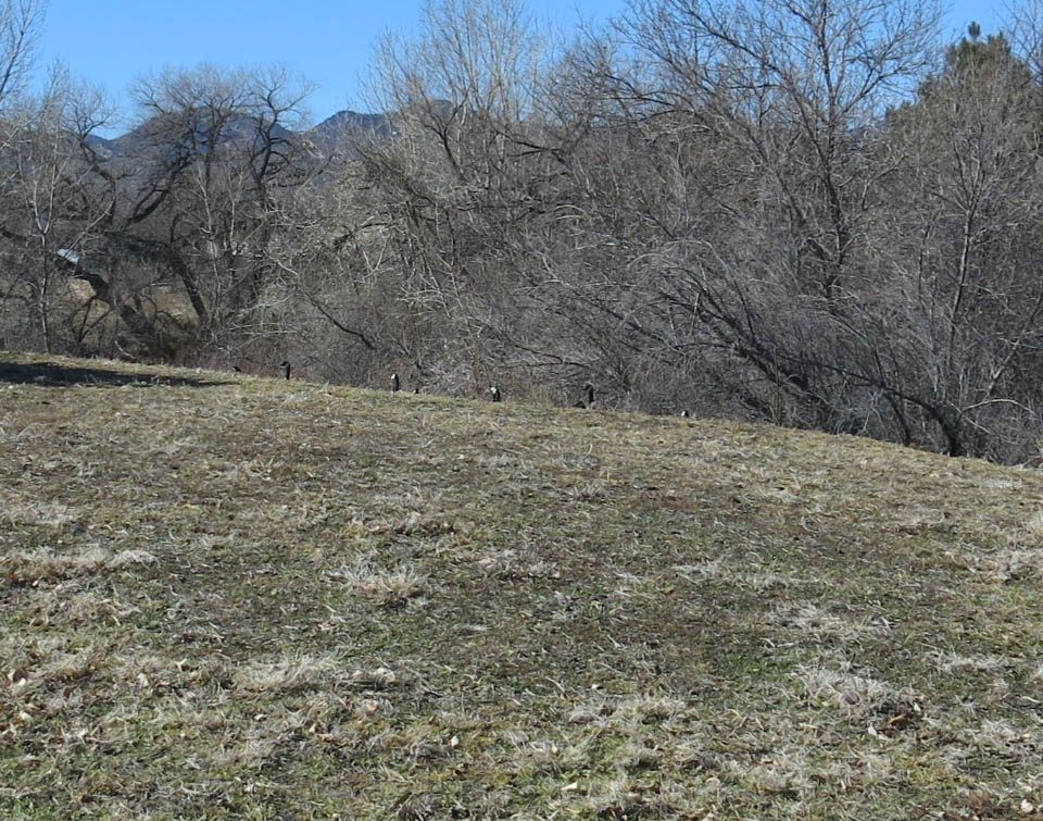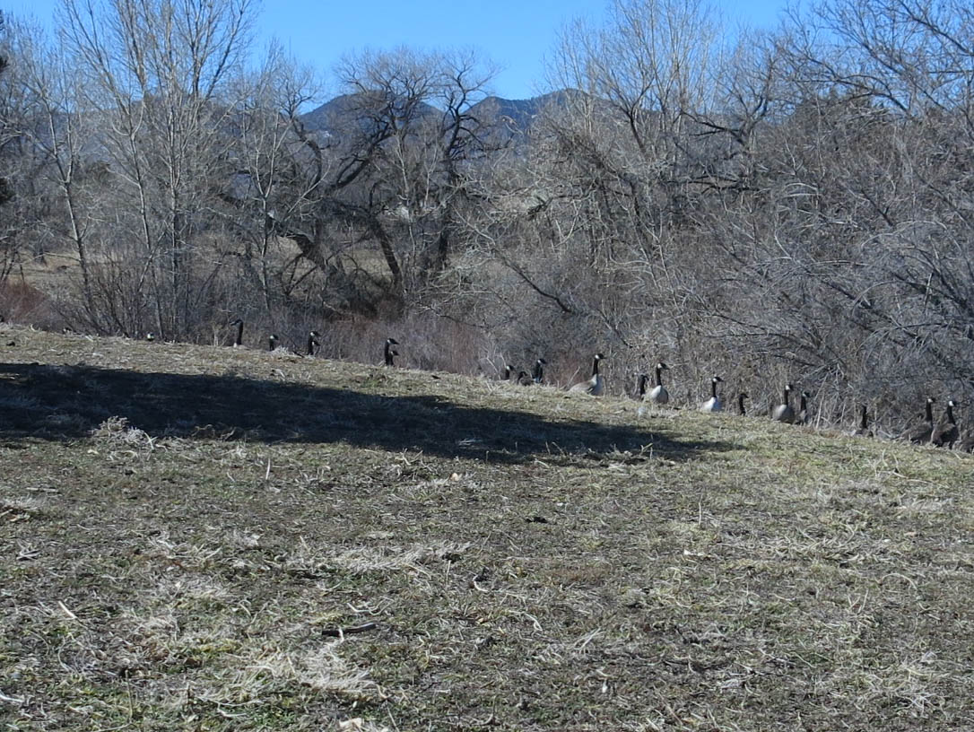 For some reason they like this little hill. It’s an artificial hill, by the way. It used to be a sort of–according to the guy I live with–haunted woodland with scary trees and an abandoned house and broken-down barbed-wire fences. Now it’s just a hill, with geese on one side of it. Sometimes they’re at the top, too.