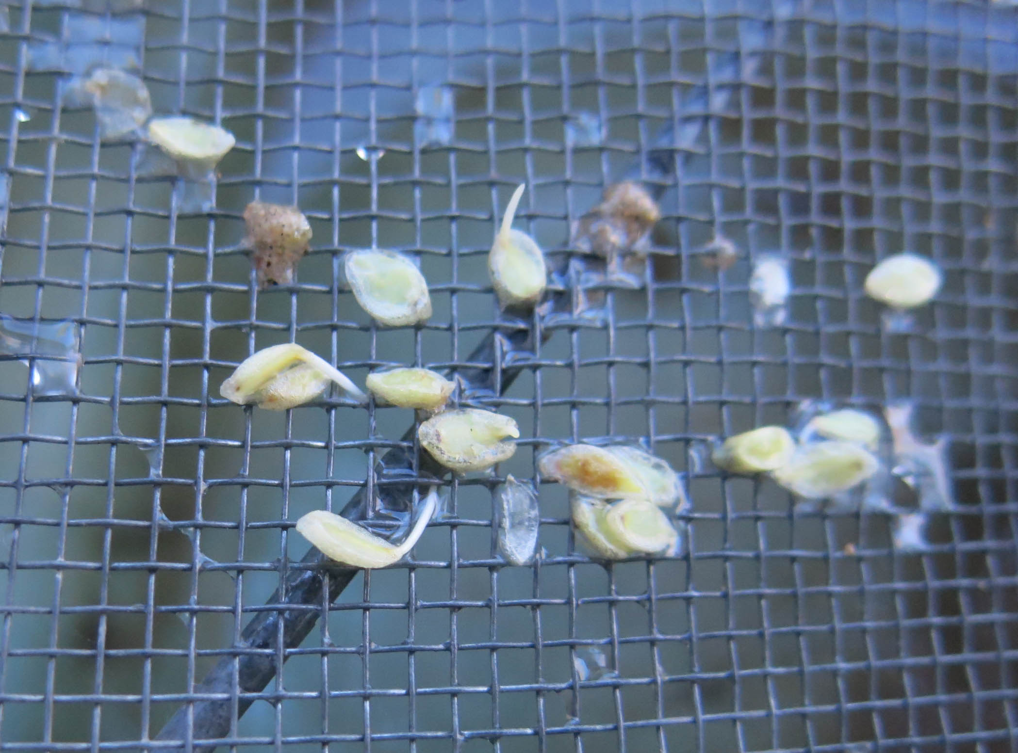 Then the seeds were plucked off the sieve with tweezers.