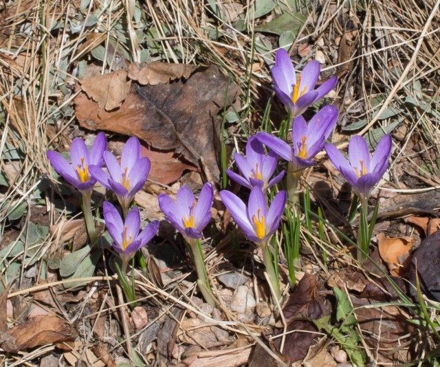 The guy I live with said he planted these several years ago, and thought they had died because nothing happened and he didn’t see any crocuses, but maybe the corms he planted were too small to flower and they built themselves up and are now able to flower. This happens sometimes.