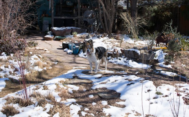 Oh, my dear dog. Do *not* freeze your toesies. I’m also thinking the guy you live with is right about your shadow looking like a Rodent of Unusual Size. He’s perceptive. Maybe listen to him about the lair. Your weather did so many things, all the things. The snow seems bright, and the flowers appear extra bright. The smaller iris looks about the size of the crocus. Can you see the flowers in all their splendor? I forget whether you can or cannot see blue.