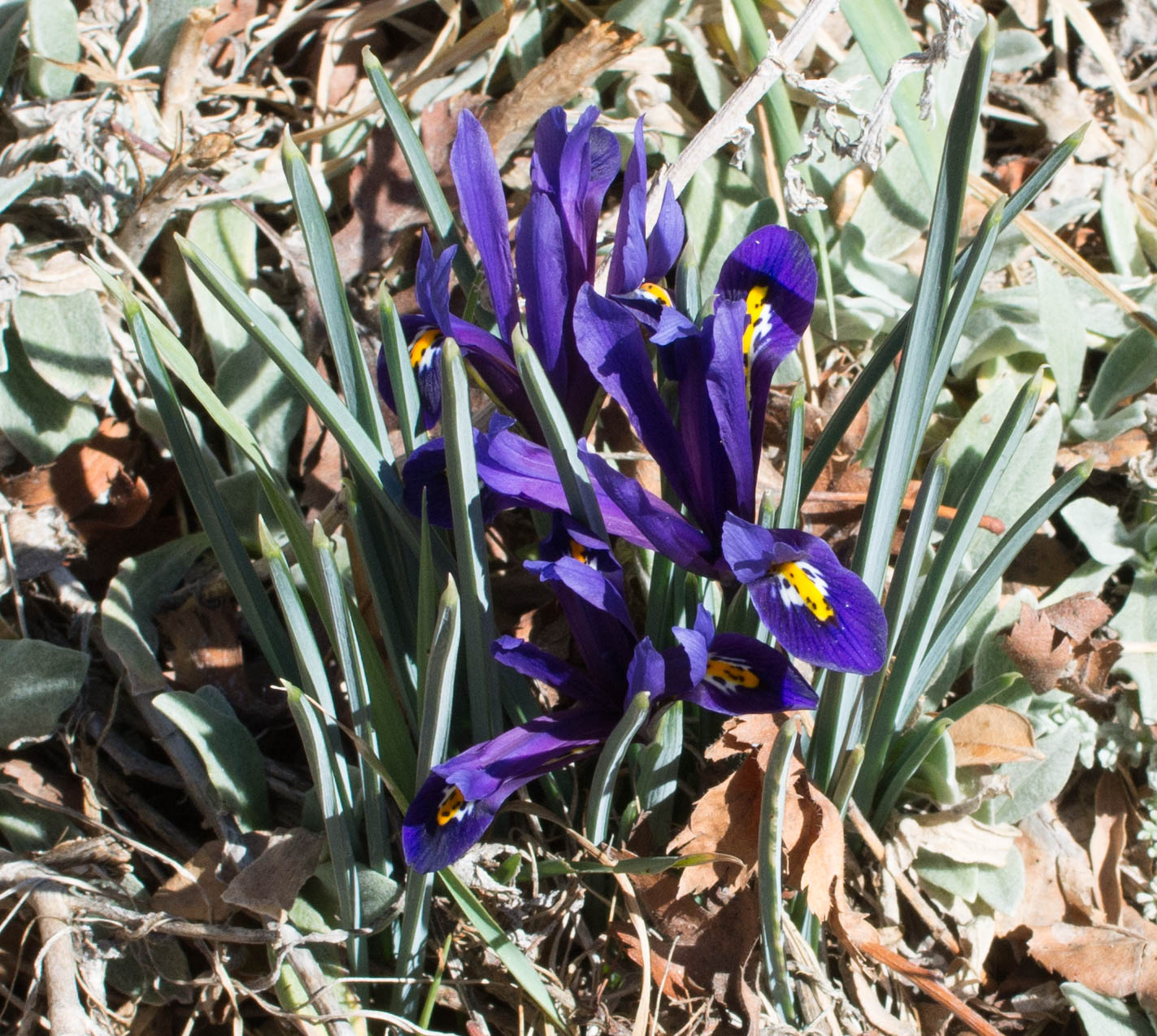 This is the regular species Iris reticulata which has been in the garden for a quarter of a century. It’s strongly scented of violets. Maybe the picture should show it purpler.