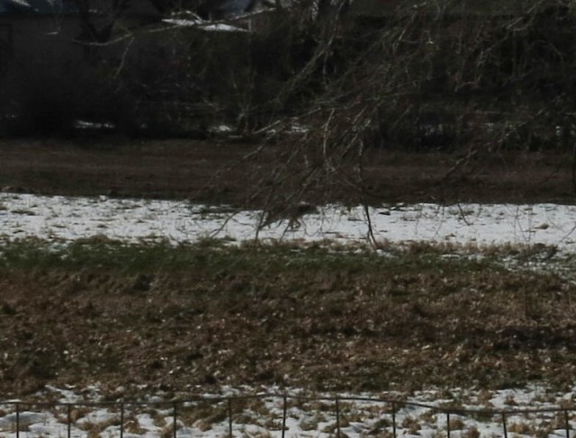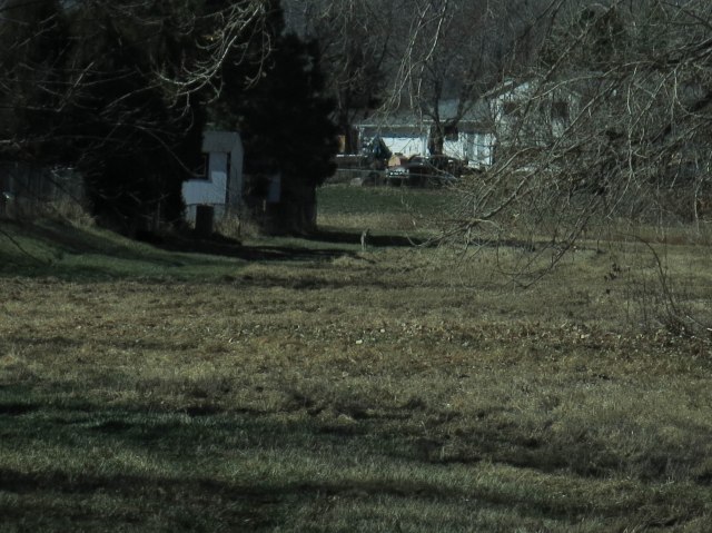 On our walk the other morning there was a lot of barking at something from across the field and we looked and this is what we saw. The barking was coming from off to the right in this picture, from a yard you can’t see.