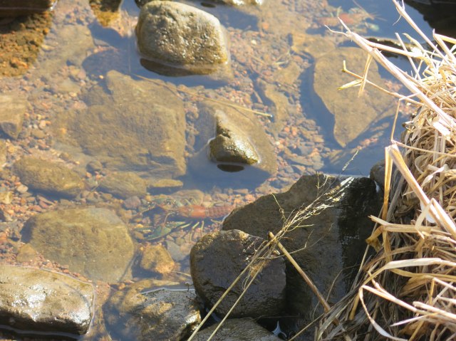 We walked along and could see movement in the canal. The guy I live with said there was a crawdad fight and so I went down the bank a little, just to look.