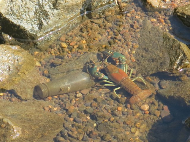 That crawdad really does look big. It would probably be pretty good. They are not so big or good here, and we are not supposed to eat them, but we do anyway. I think it is more work than it is worth. Those in the Guadalupe River in the Santa Clara Valley are even more toxic because of the mercury. They certainly do not get eaten.