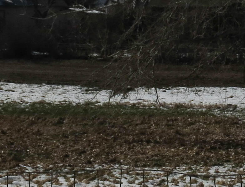 Today the coyote came back. The dial on the camera had been turned too far so the pictures are dark, but you get the idea.