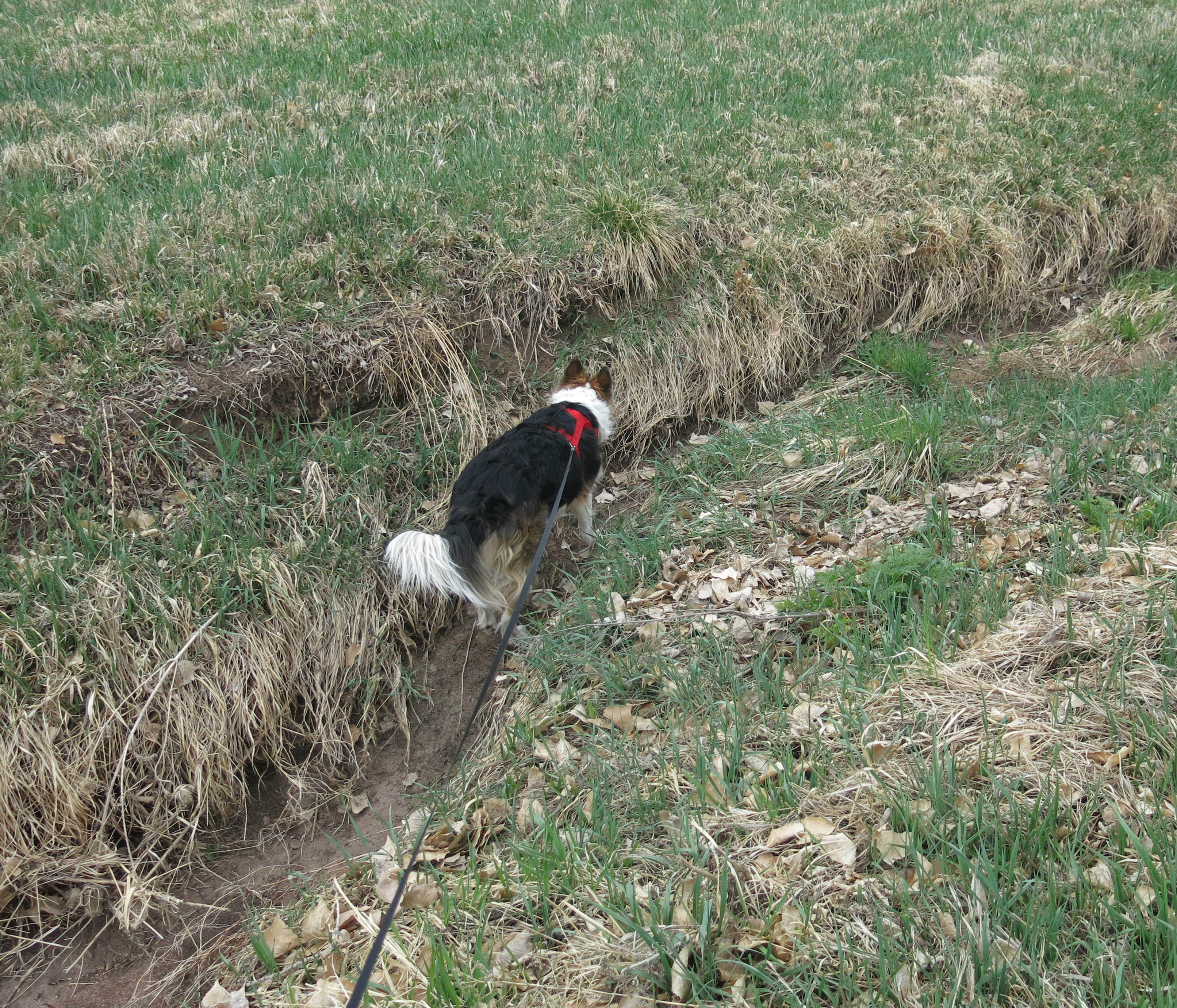This is me looking for voles, but not in the creek, which is over there.